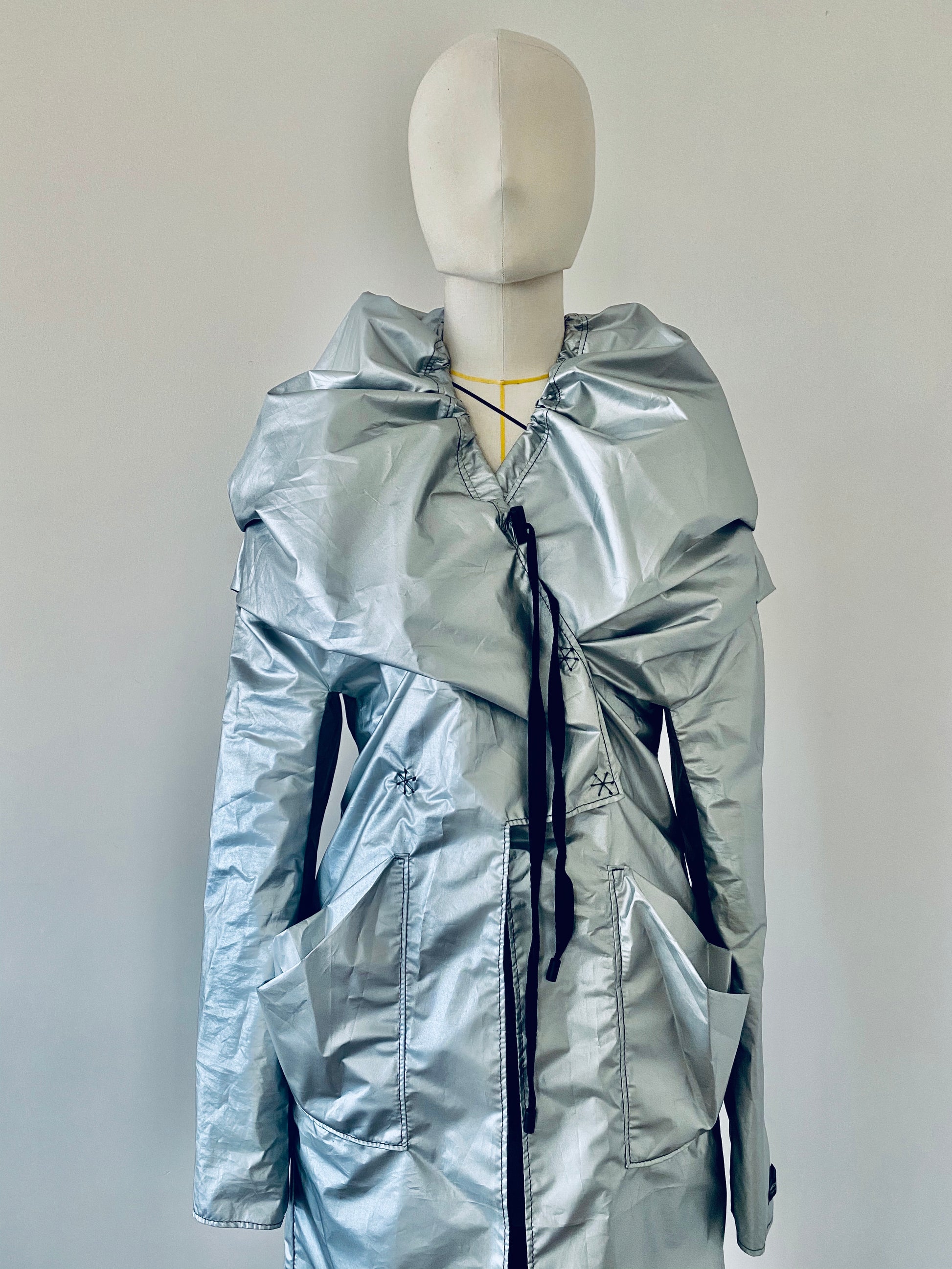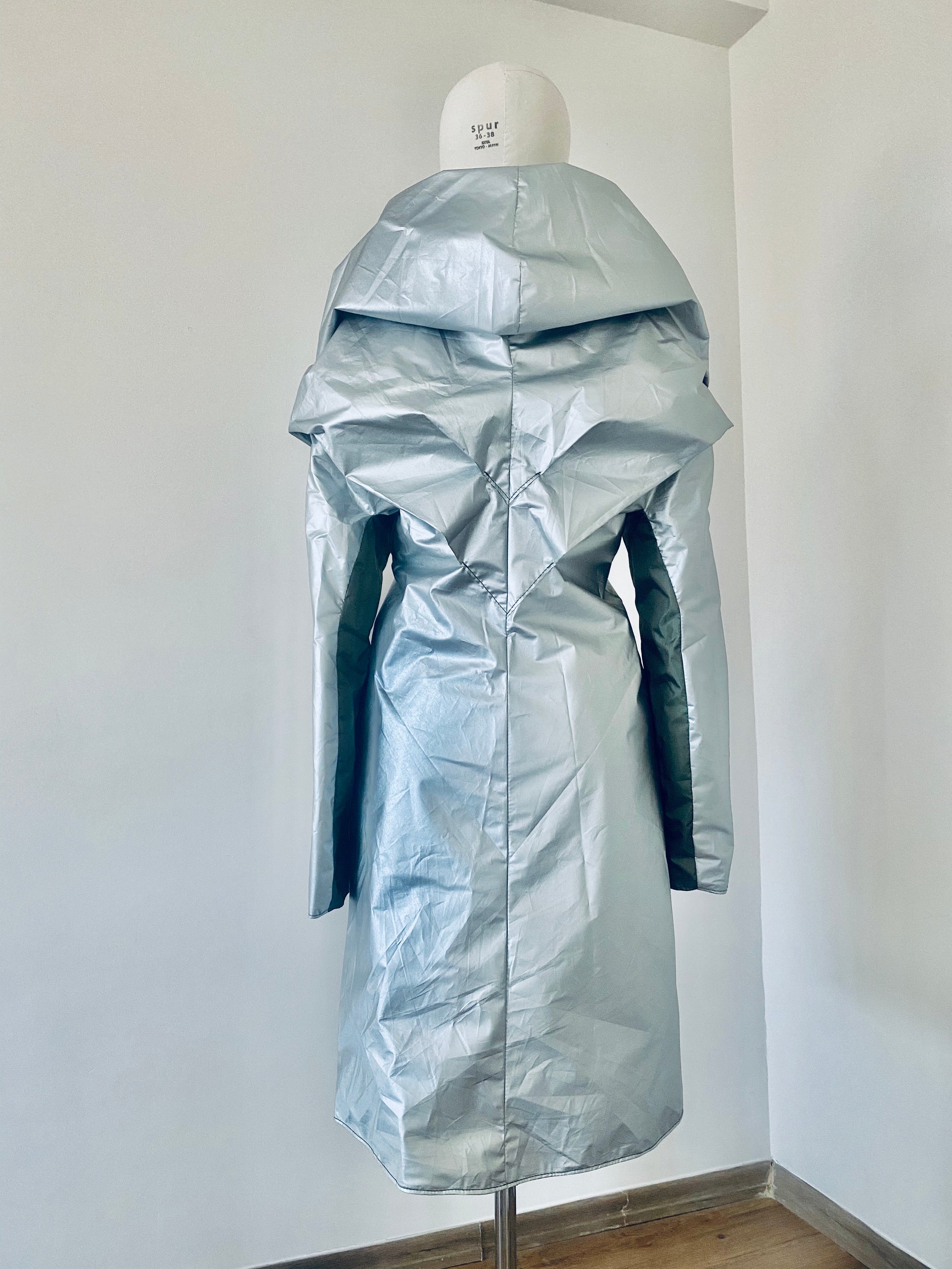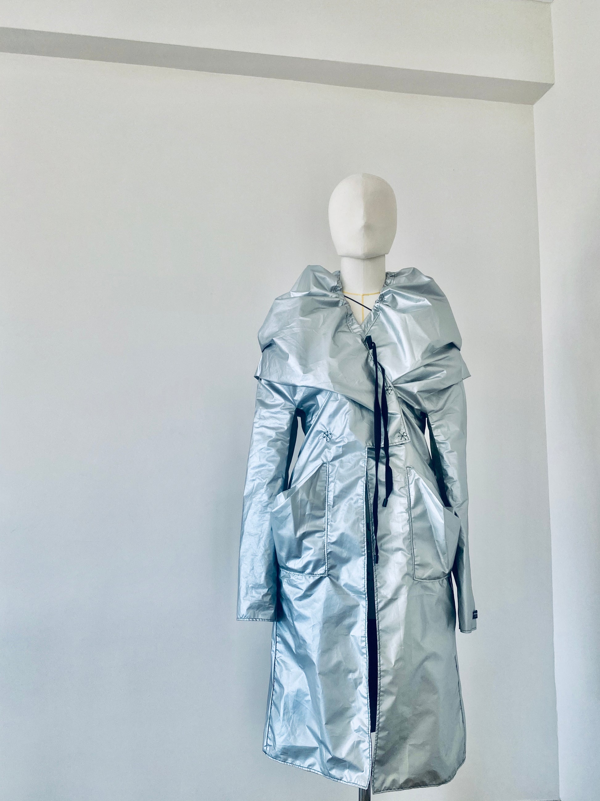 Exclusive raincoat, the only 1 piece available in size S. You can purchase the exclusive piece with 15% discount or order " Made to Measure " in any color of your preference according to your body size and height.