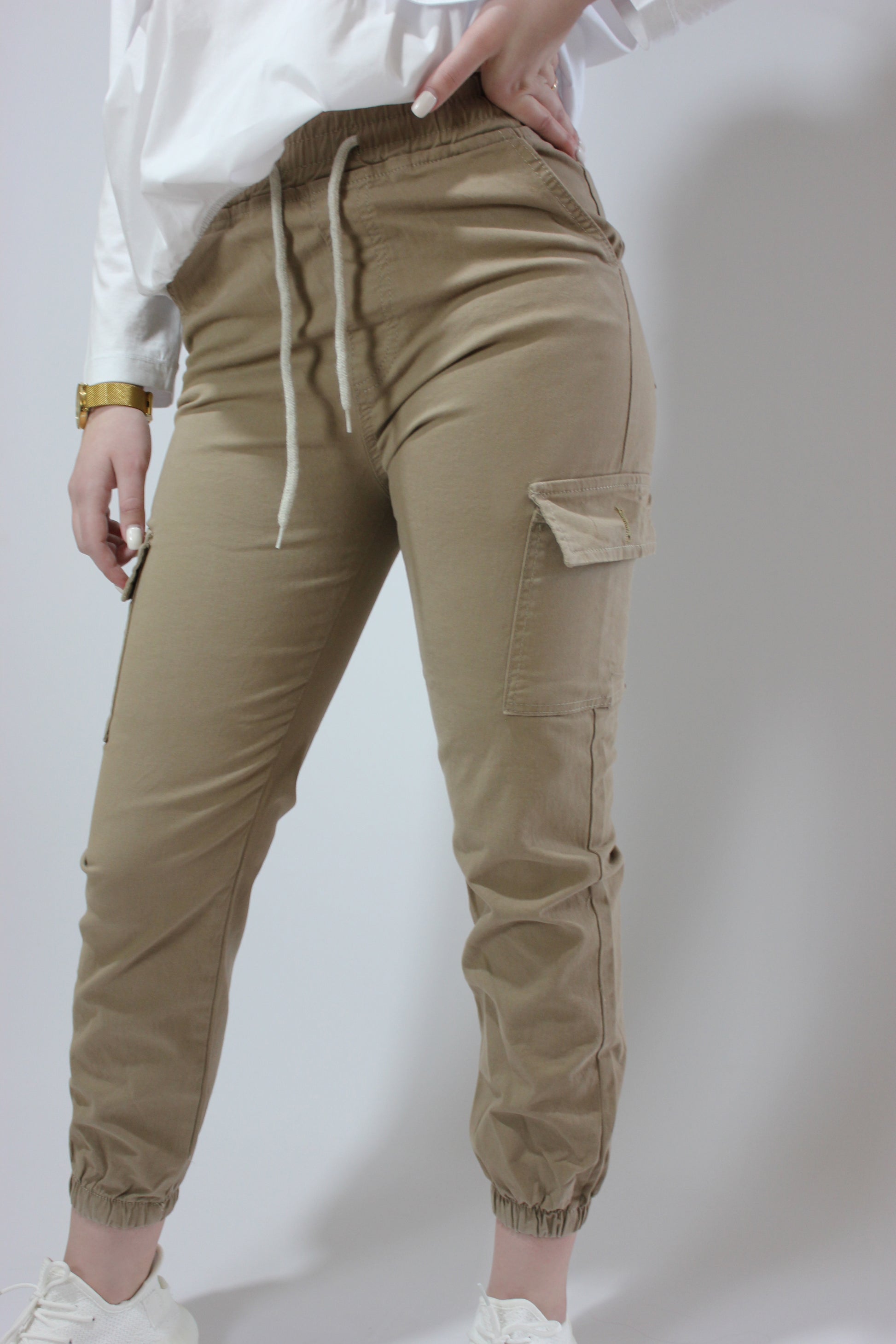 Бежевые брюки-карго