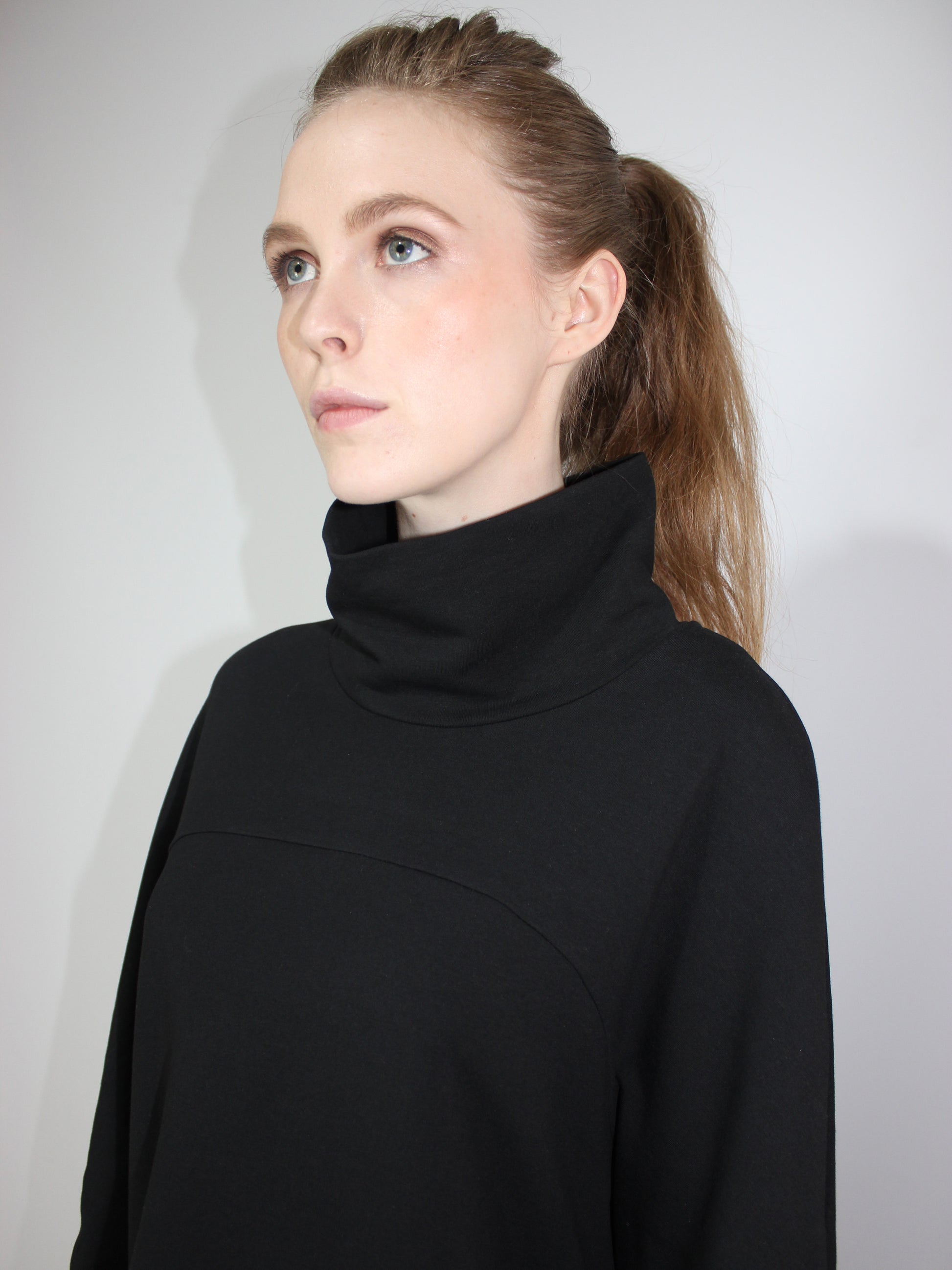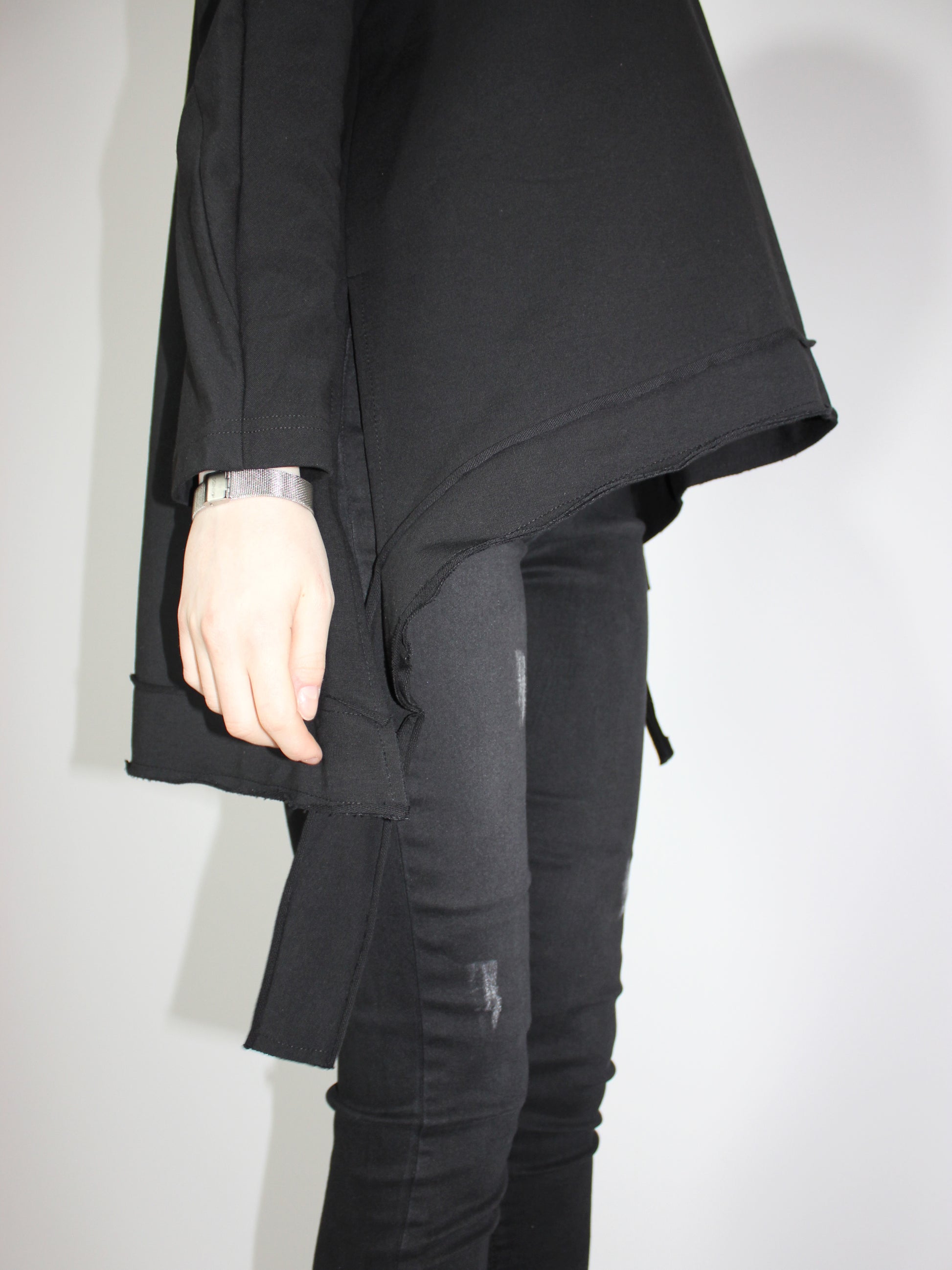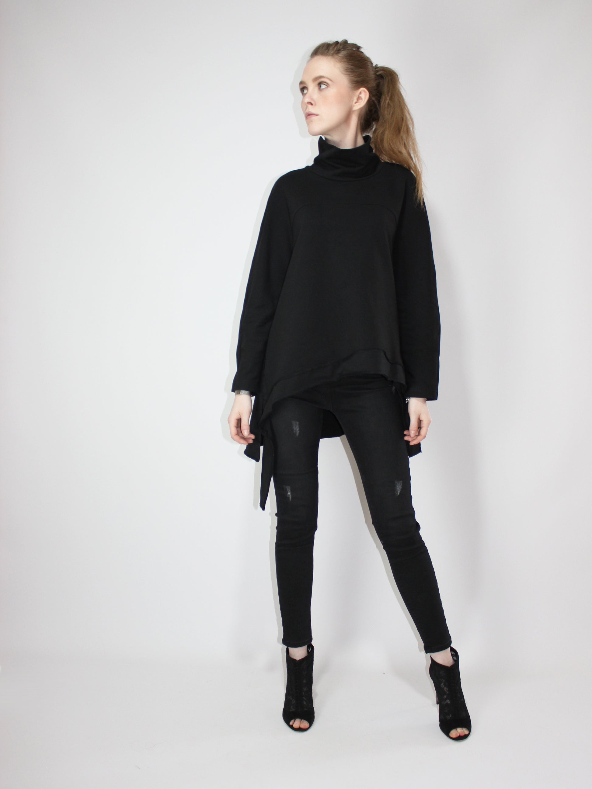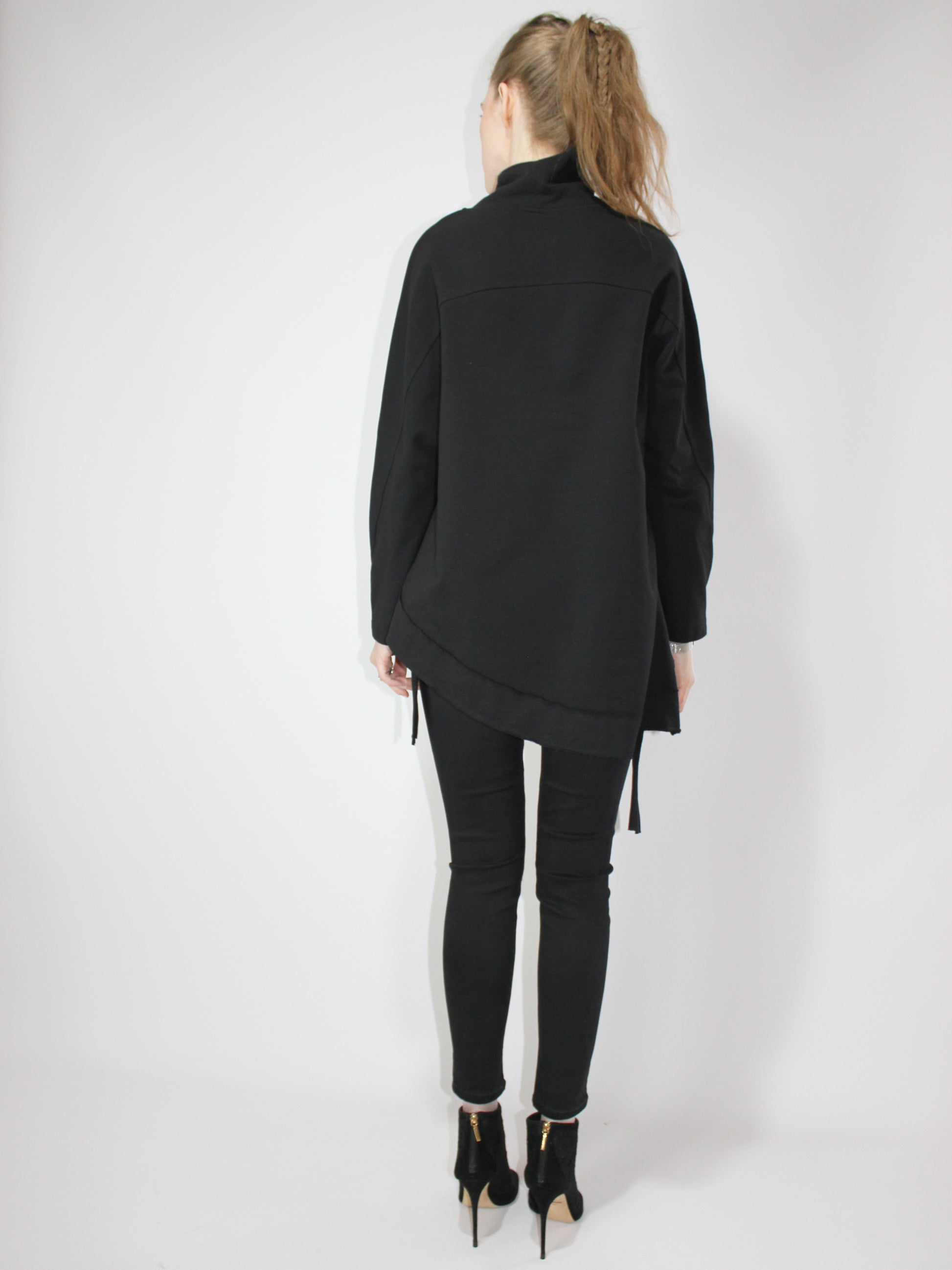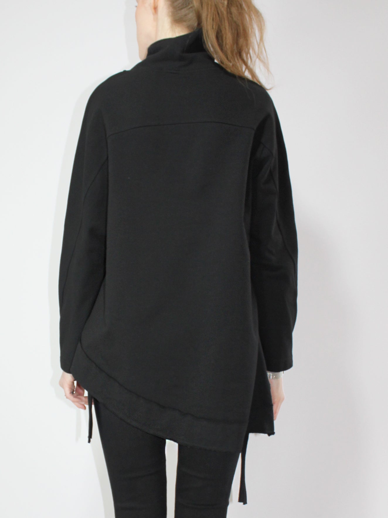 Черная асимметричная туника с длинным рукавом