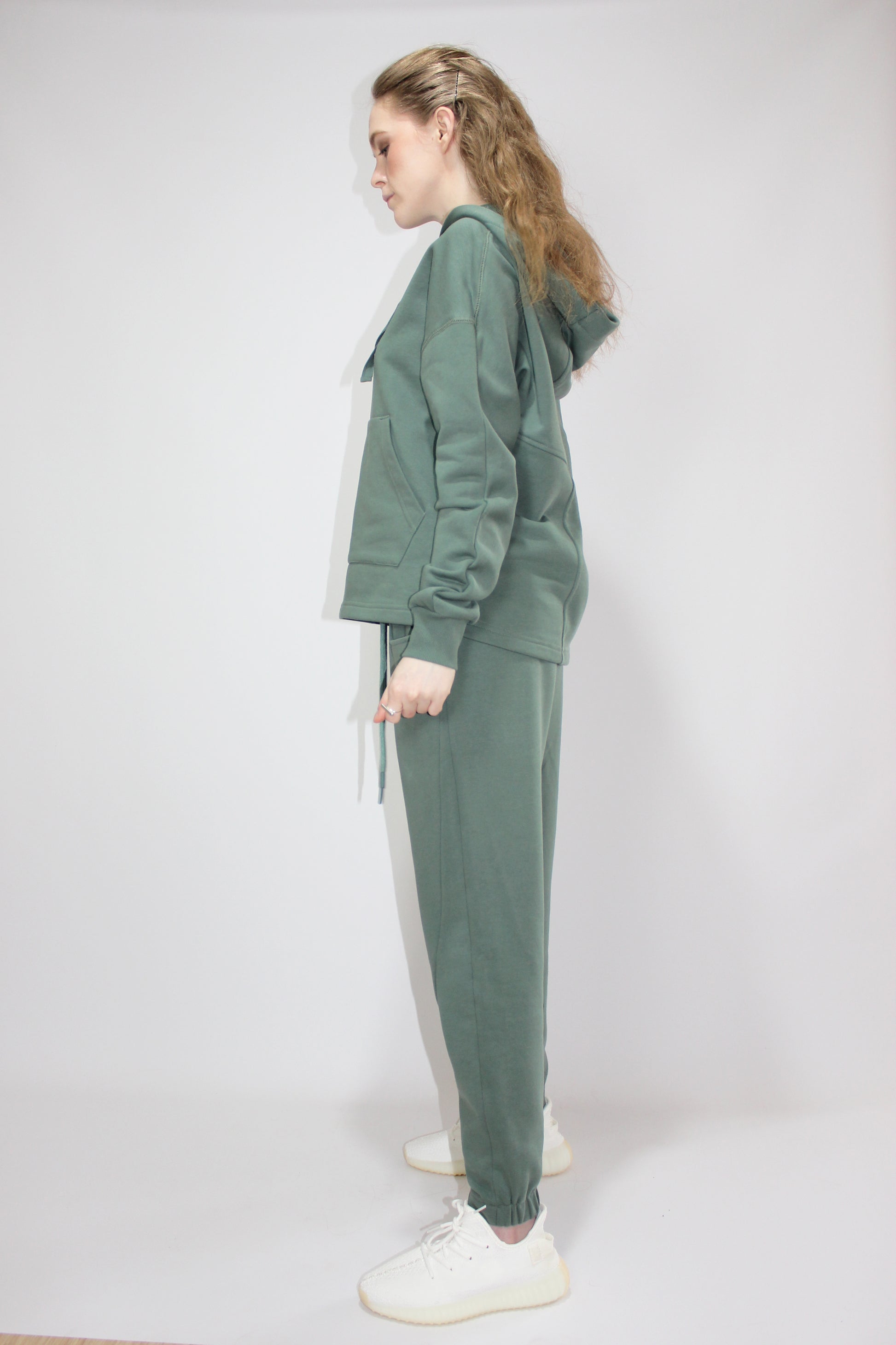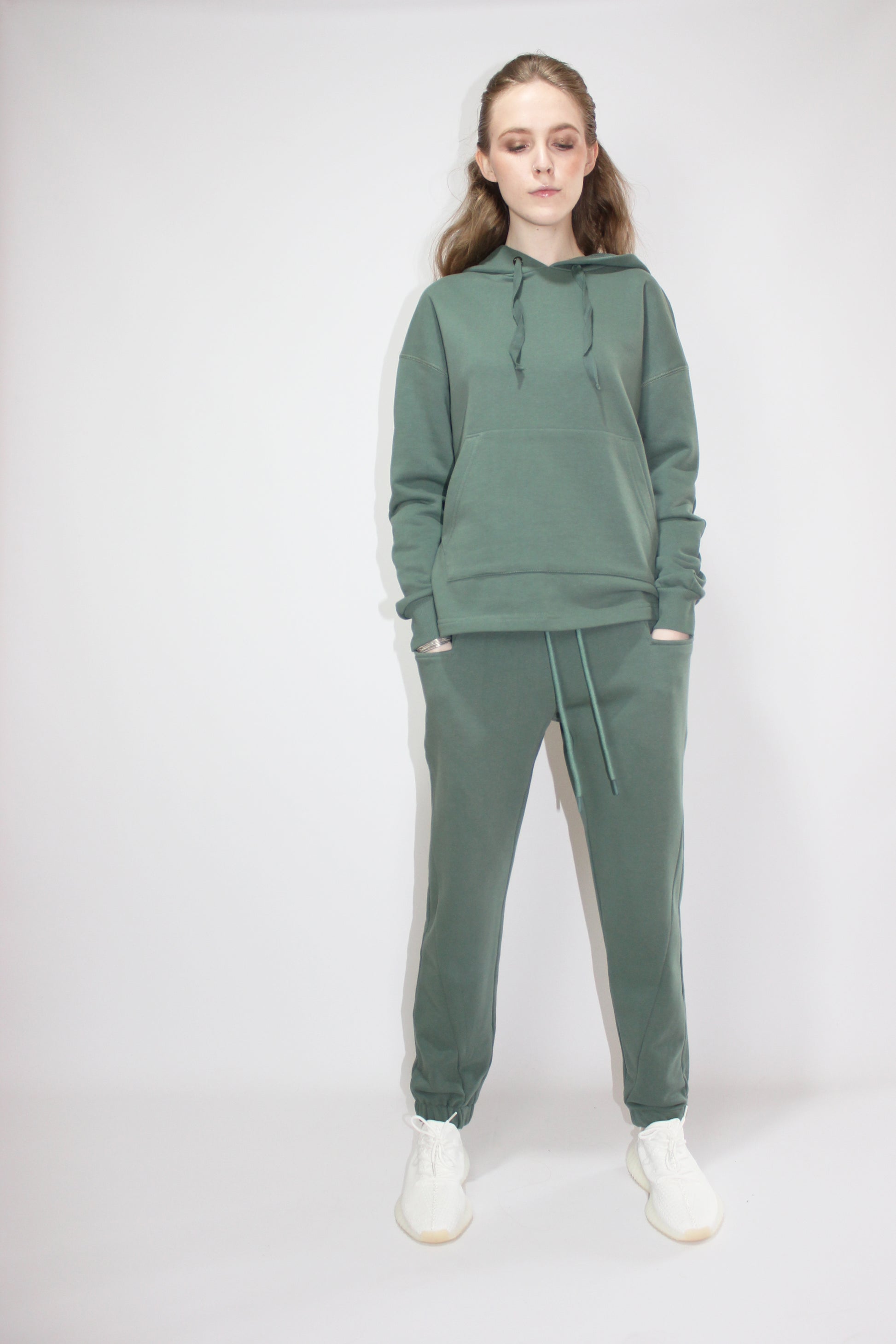 Повседневная толстовка с капюшоном и брюки цвета «зеленый лес»