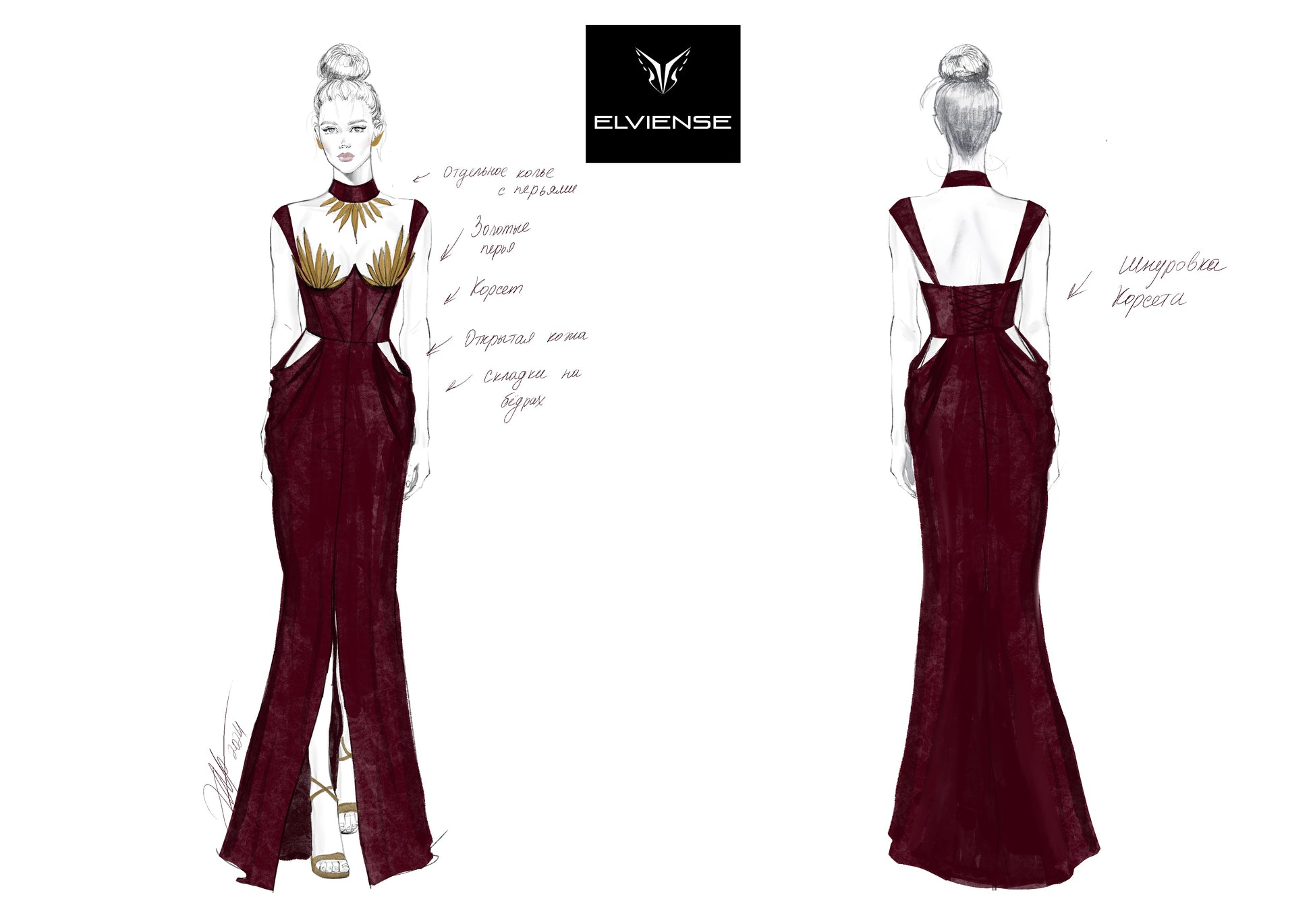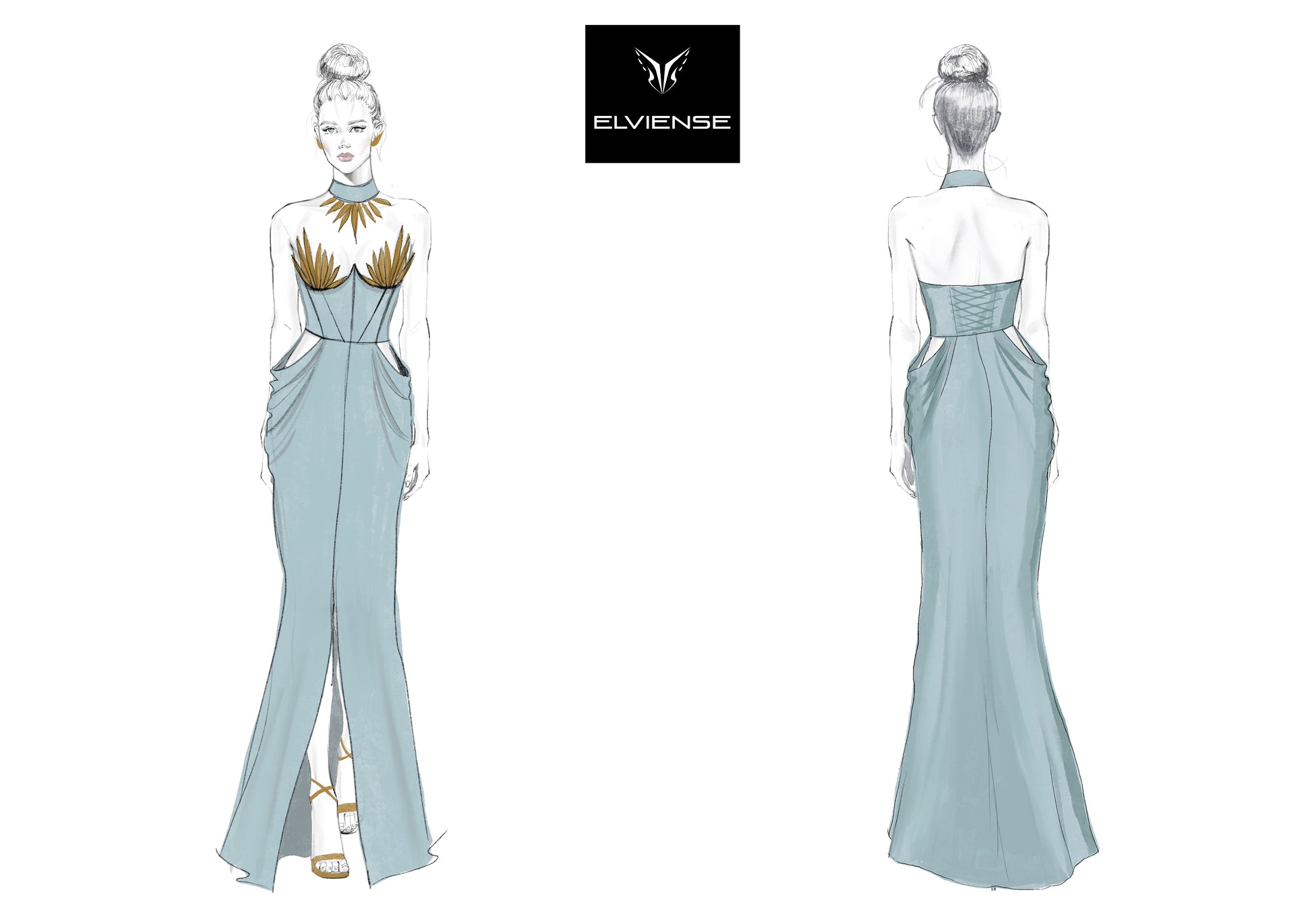 Golden Feathers Evening Gown