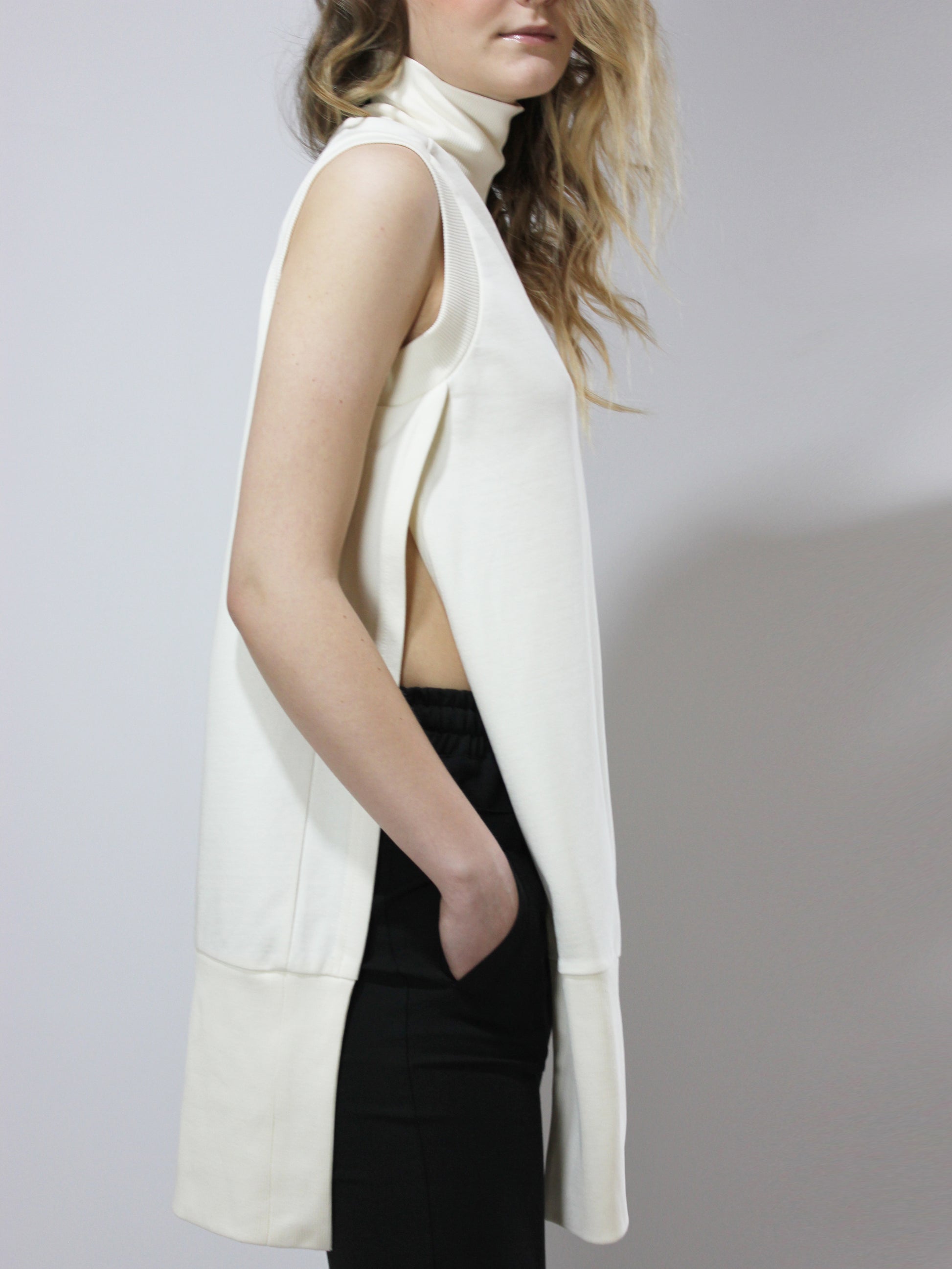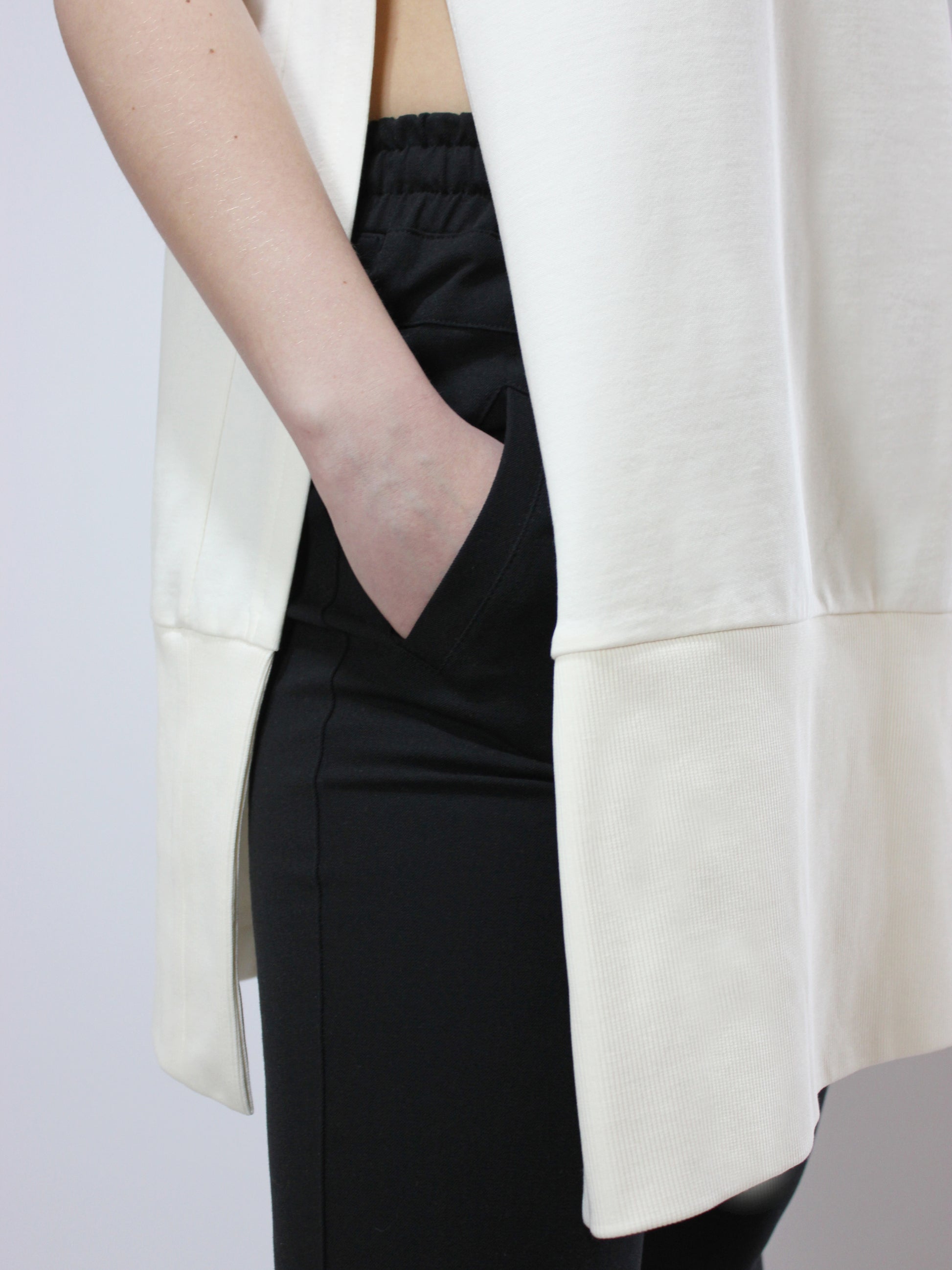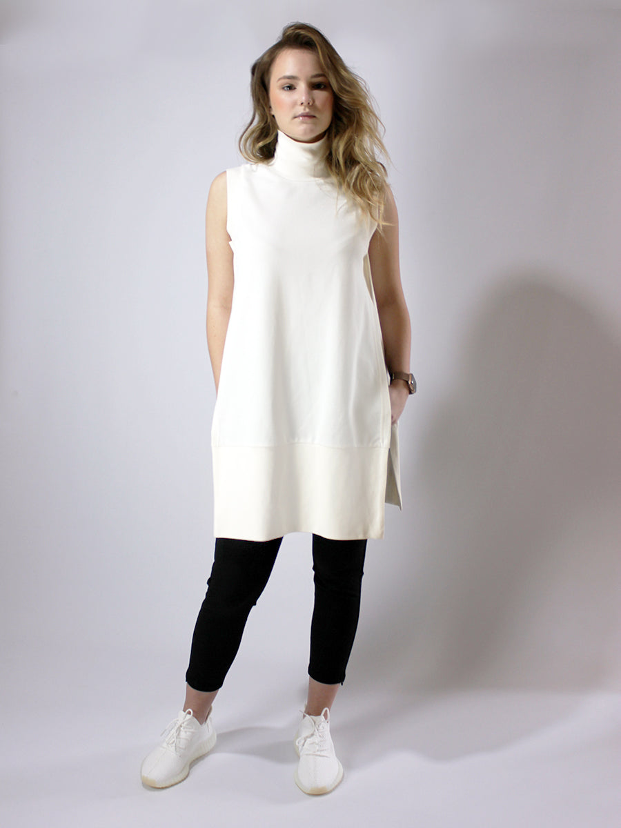 Прямой крой элегантной туники с открытыми боками и плавной широкой линией горловины. Многофункциональная вещь, которую можно носить как со спортивным, так и со стильным элегантным стилем. В сочетании с белой или цвета слоновой кости короткой юбкой будет выглядеть как платье. Вы можете носить ее поверх белой рубашки или нижнего белья с длинными рукавами в холодном климате. Или отдельно в более теплом климате.