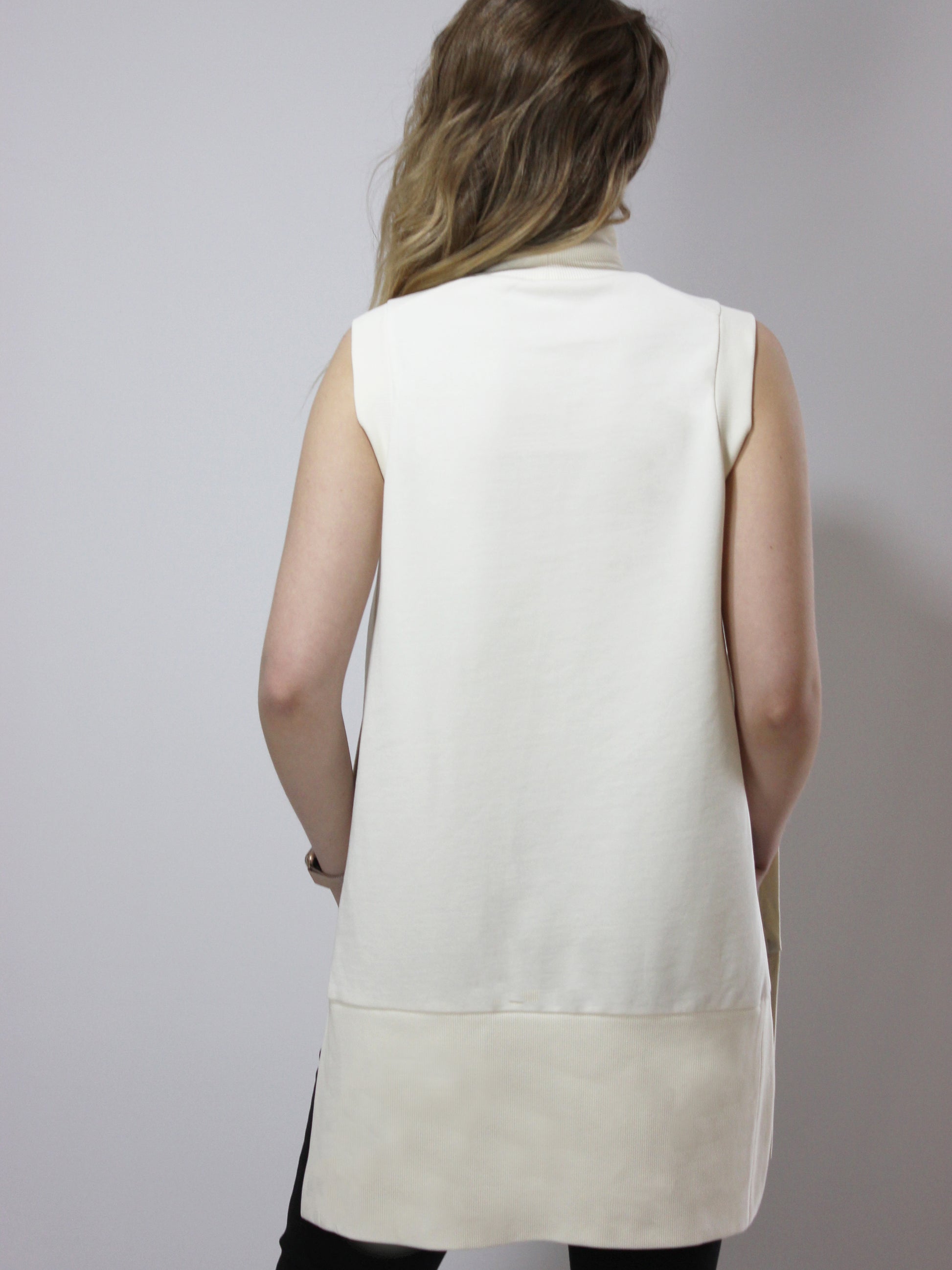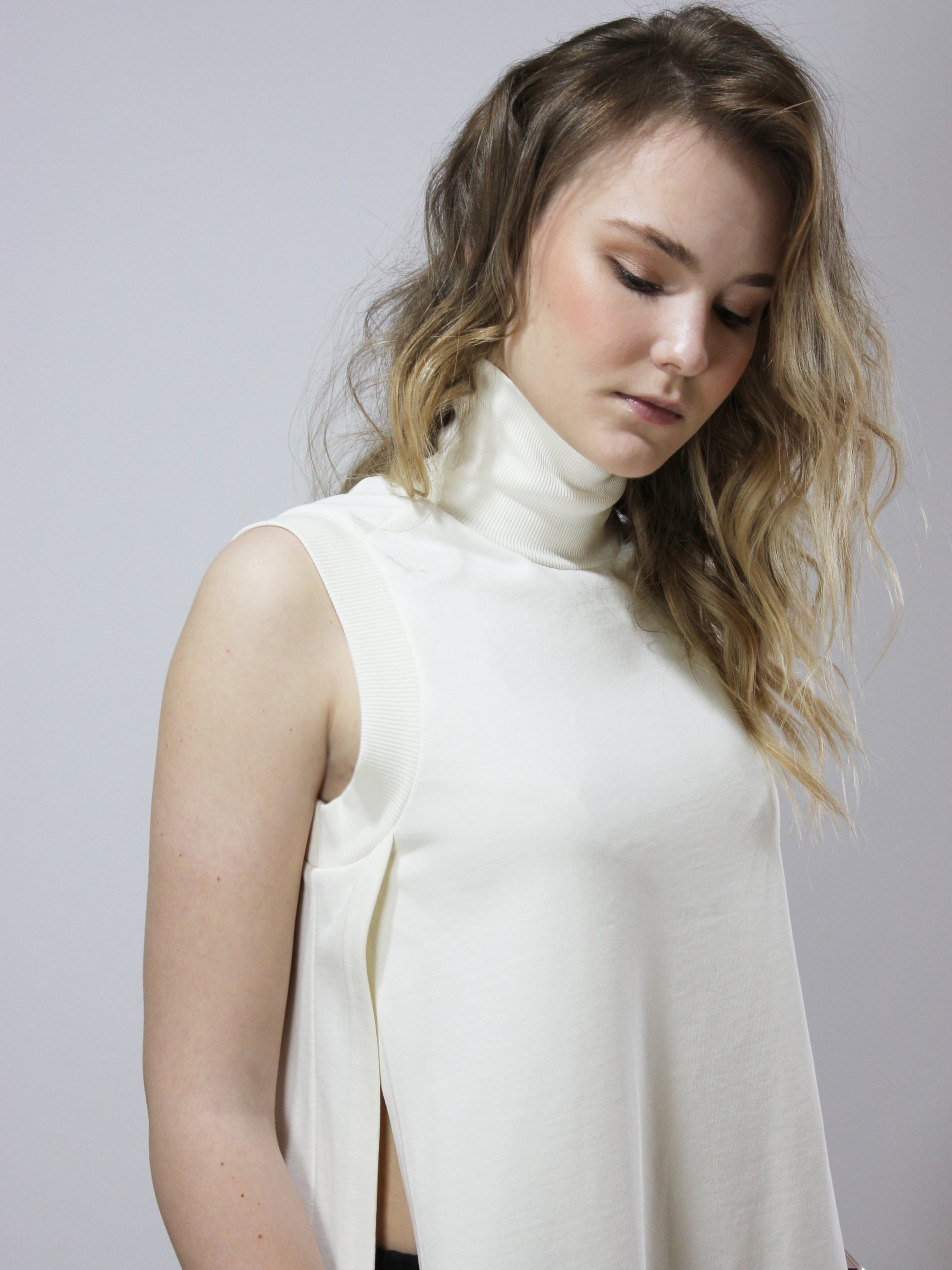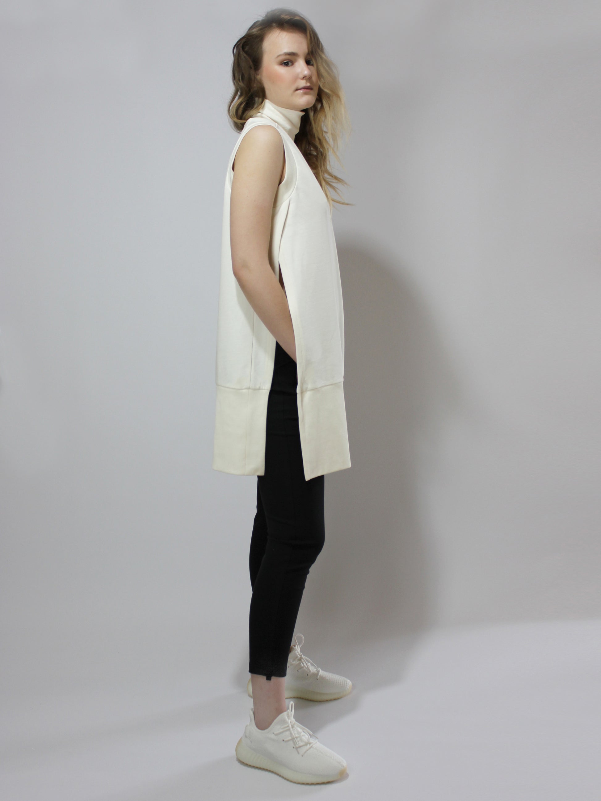 Трикотажная туника цвета слоновой кости с высоким воротом