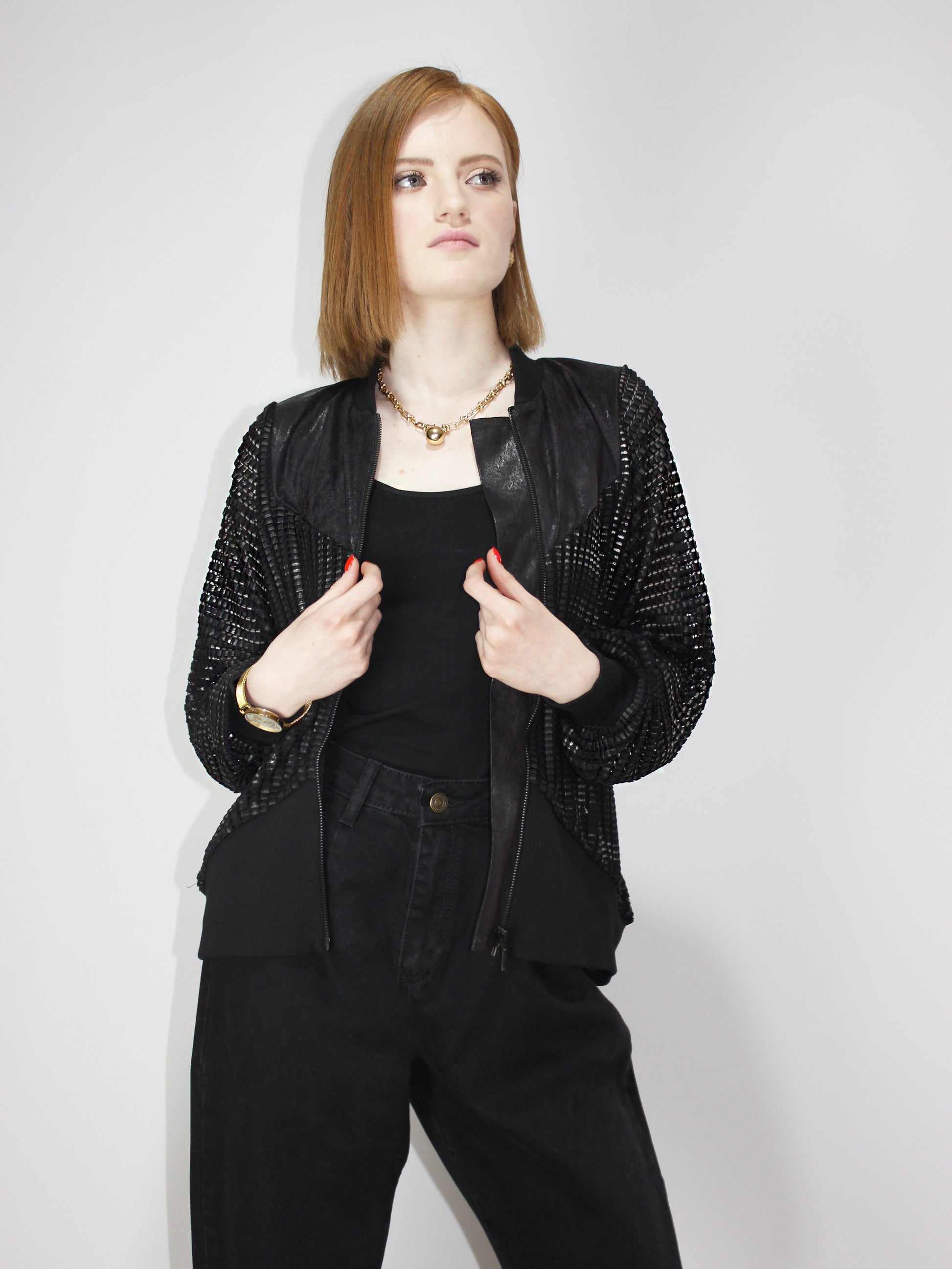 Прозрачная фактурная сетка, свободного кроя бомбер из экокожи. Новый модный тренд 2025 года! Имеет длинный рукав «летучая мышь». Коктейльная, свободная, вечерняя куртка станет идеальным образом для выхода в свет, на вечеринку, на прогулку! Нарядная, повседневная легкая куртка украсит фигуру любой леди. Молния спереди, что делает ее универсальной на каждый день! Классический или спортивный стиль — решать вам! Вы можете носить ее на работу в офис со строгими брюками и белой рубашкой, а вечером отправиться в ресторан или на корпоратив поверх платья! . Мягкая резинка на бедрах. Подходит беременным и будущим мамам. Идеально подходит для лета и весны. Полупрозрачная объемная сетка красиво подчеркнет открытые плечи и руки. Глубокий черный цвет в сочетании с серебристым металлическим блеском фактуры выглядит роскошно. Вы можете носить ее поверх топа, футболки или легкой шифоновой блузки. Высококачественная ткань производства Турции прослужит вам долгие годы. Вы будете в восторге от качества! Французский шик в каждой детали. Новая лимитированная коллекция французского дизайнерского премиум-бренда ELVIENSE, созданная в Париже, для девушек, которые любят моду. Добавьте наш бренд в избранное в Instagram и следите за новостями!