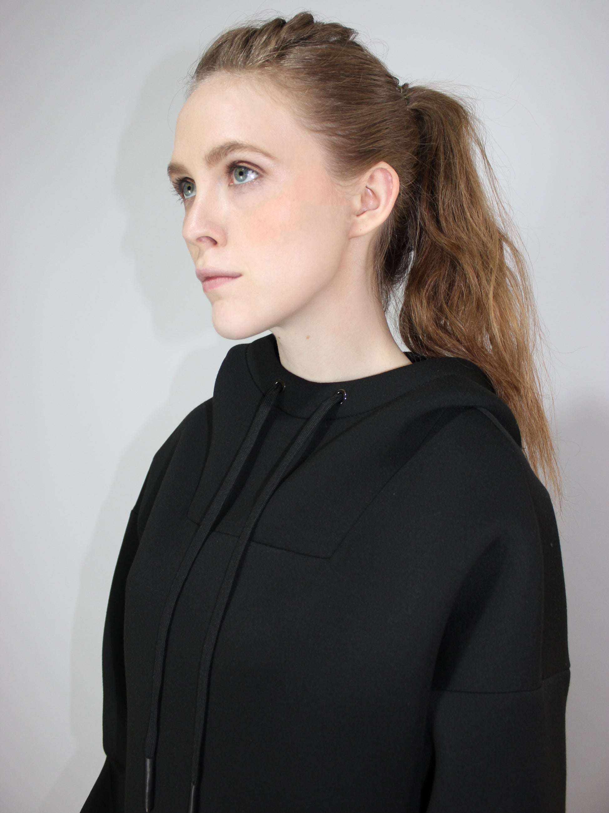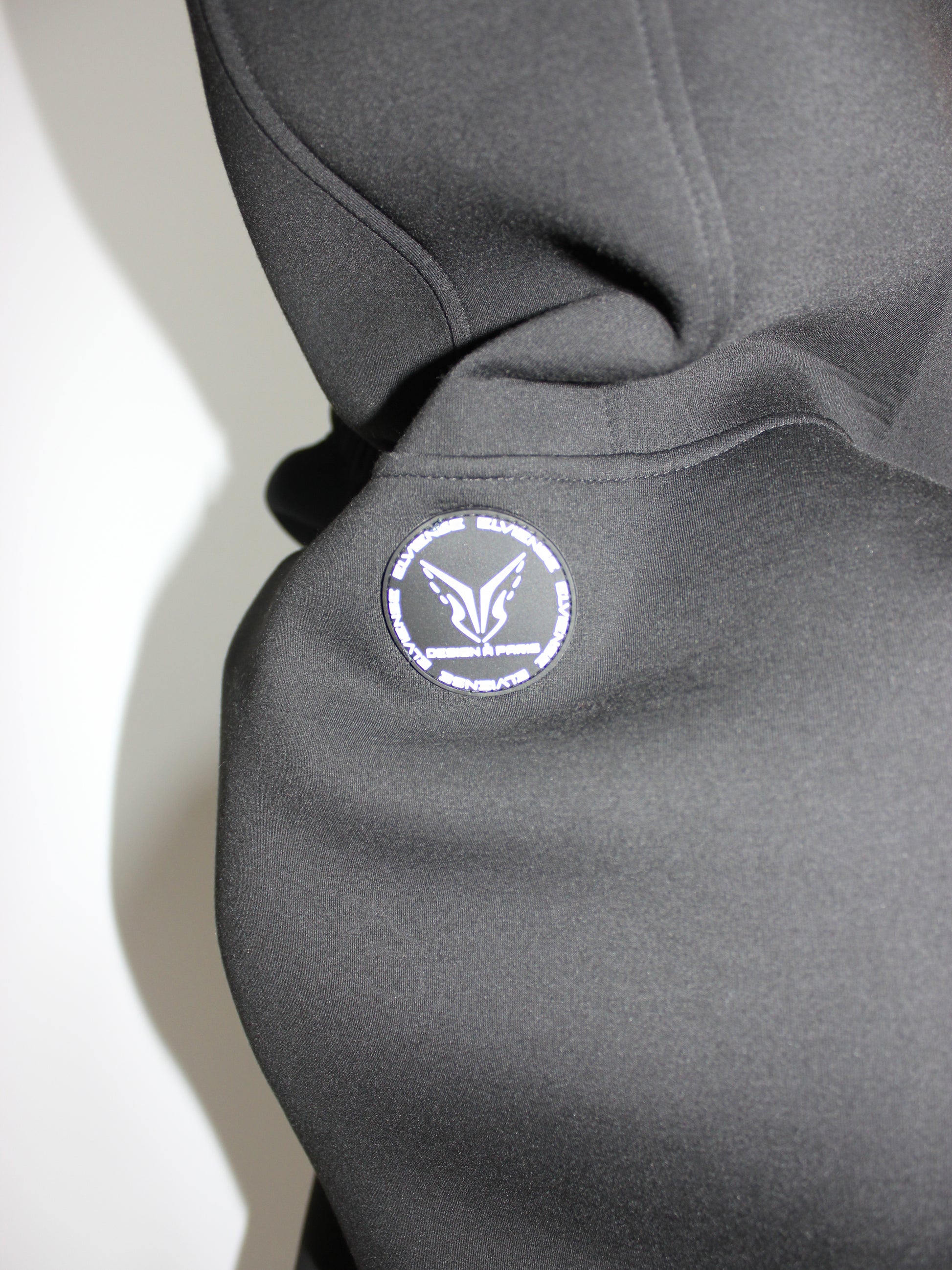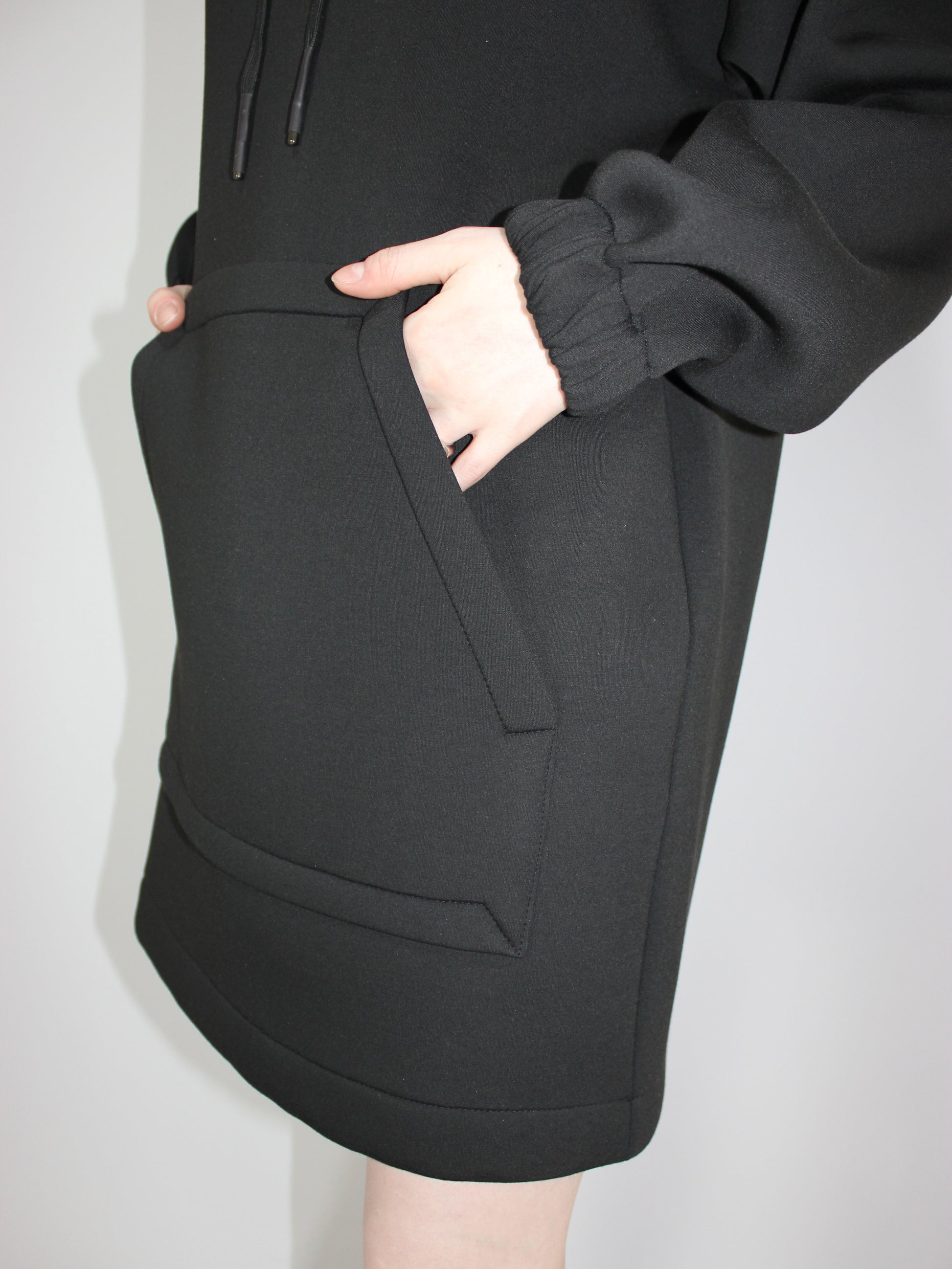 Свободный крой - стильное платье одного размера с большими удобными карманами спереди. Черный резиновый логотип ELVIENSE Paris на спине.