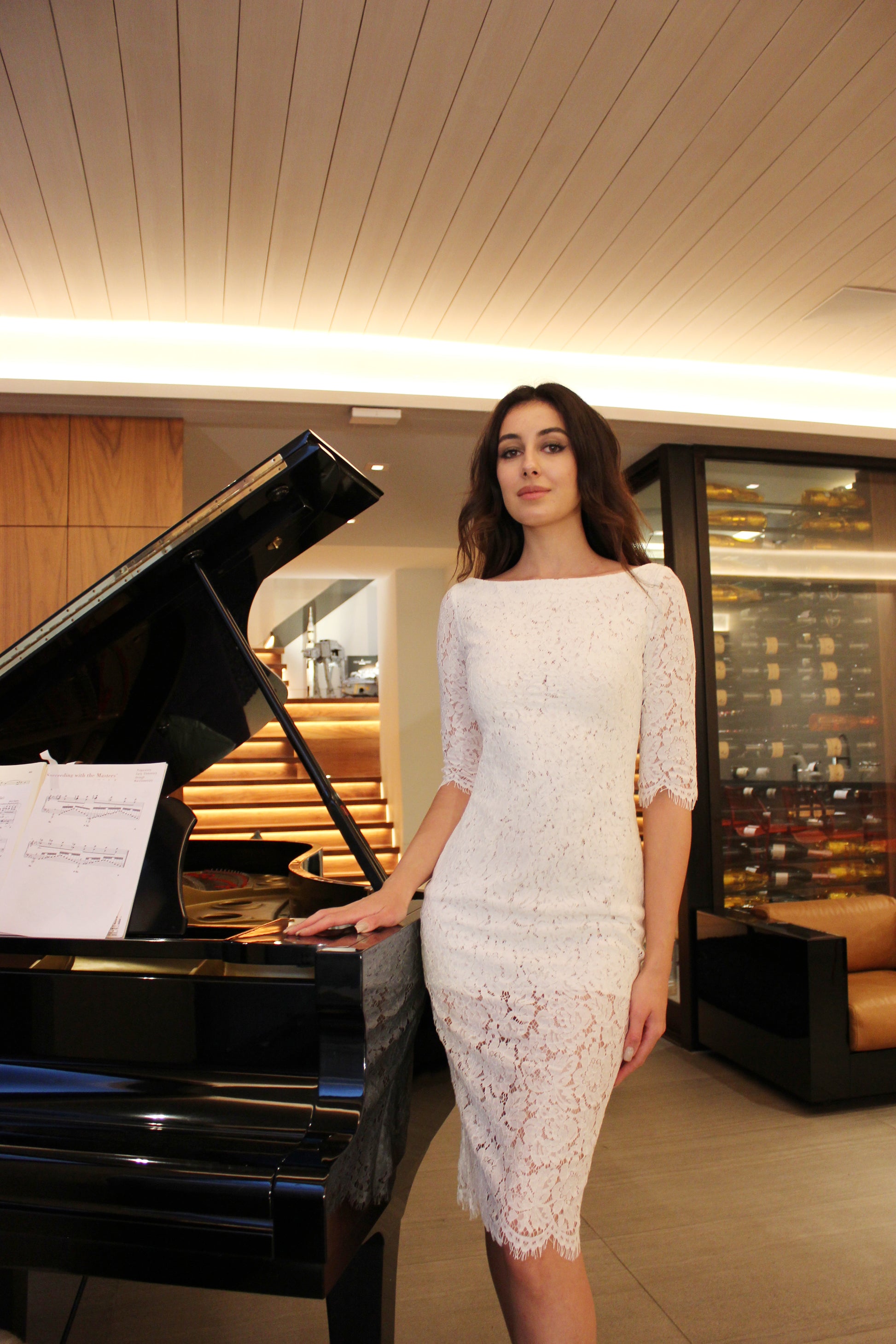 Boat neckline, 3/4 sleeves, invisible zip from the back