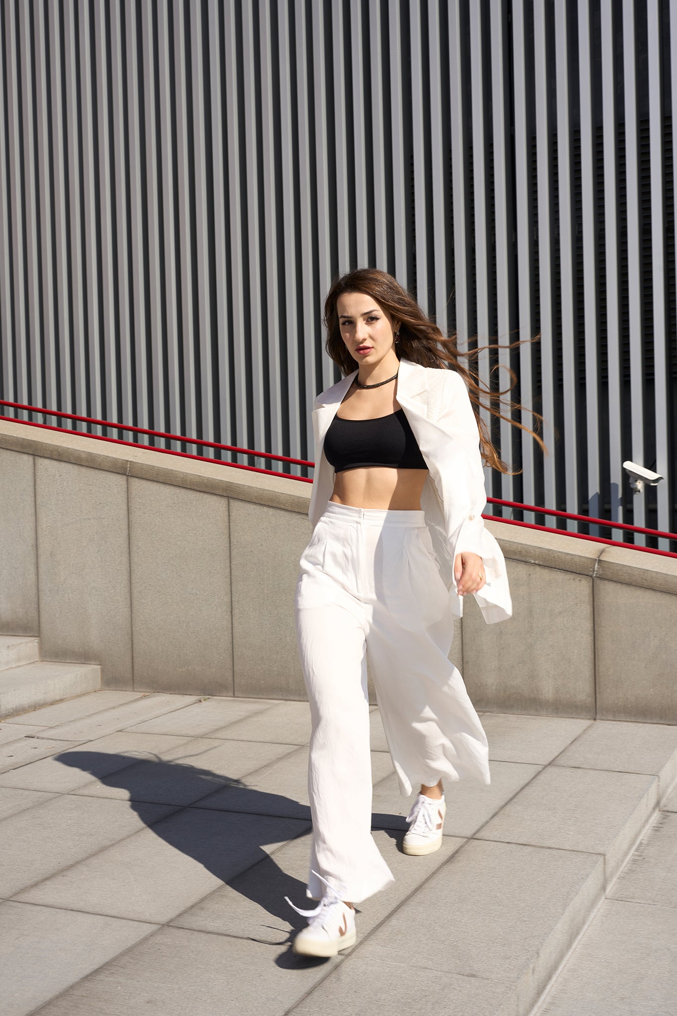 Эксклюзивный комплект из куртки и брюк, единственный экземпляр в наличии в размере S. Вы можете приобрести эксклюзивную вещь со скидкой 15% или заказать «Сделано на заказ» в любом цвете по вашему выбору в соответствии с вашими размерами и ростом.