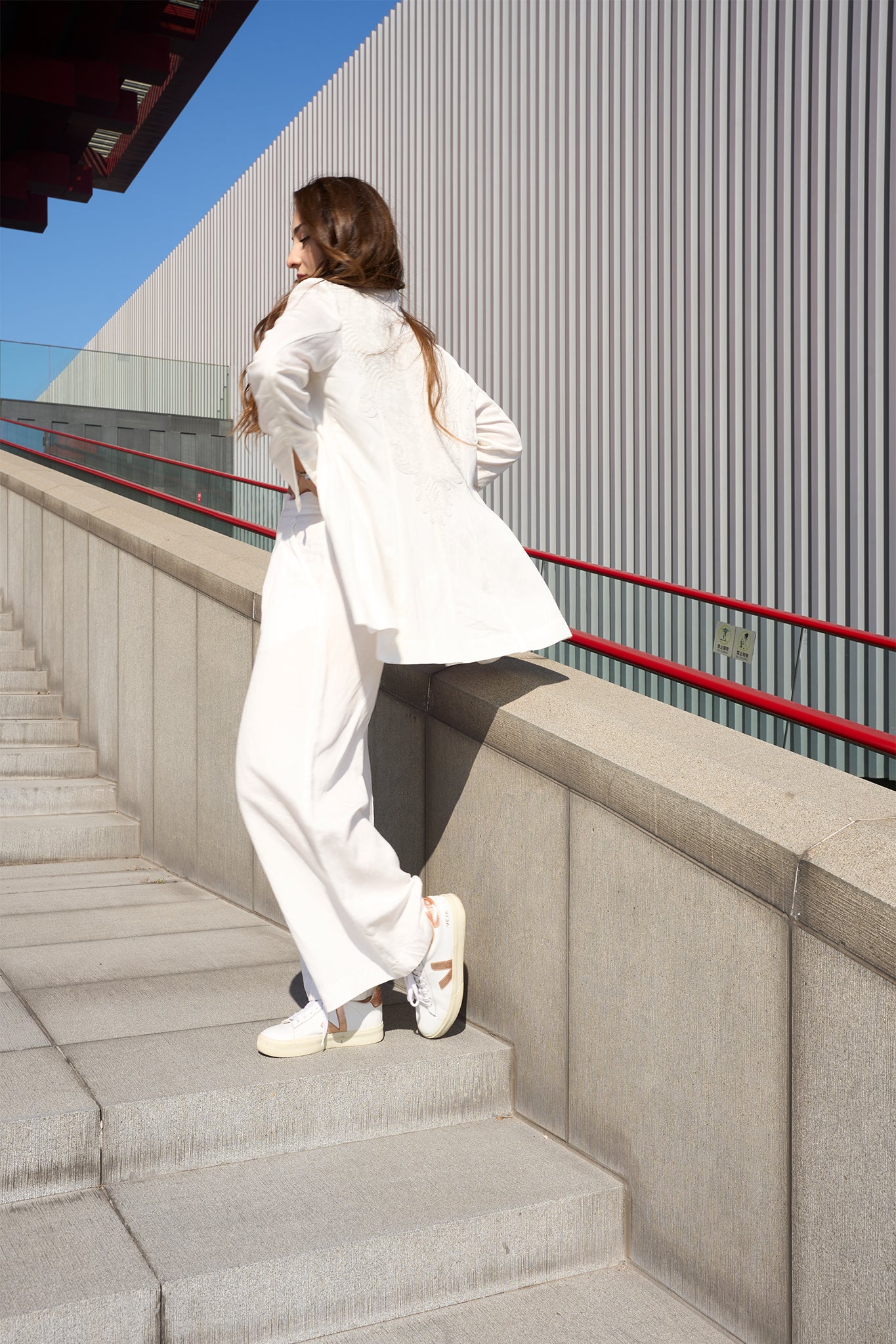 Нежные кружева на спине и плечах куртки подчеркивают элегантность свежего летнего нарядного и в то же время повседневного образа. Без подкладки, натуральный легкий материал. Шелк в составе делает его практически не мнется! Лучший выбор для знойной летней жары.