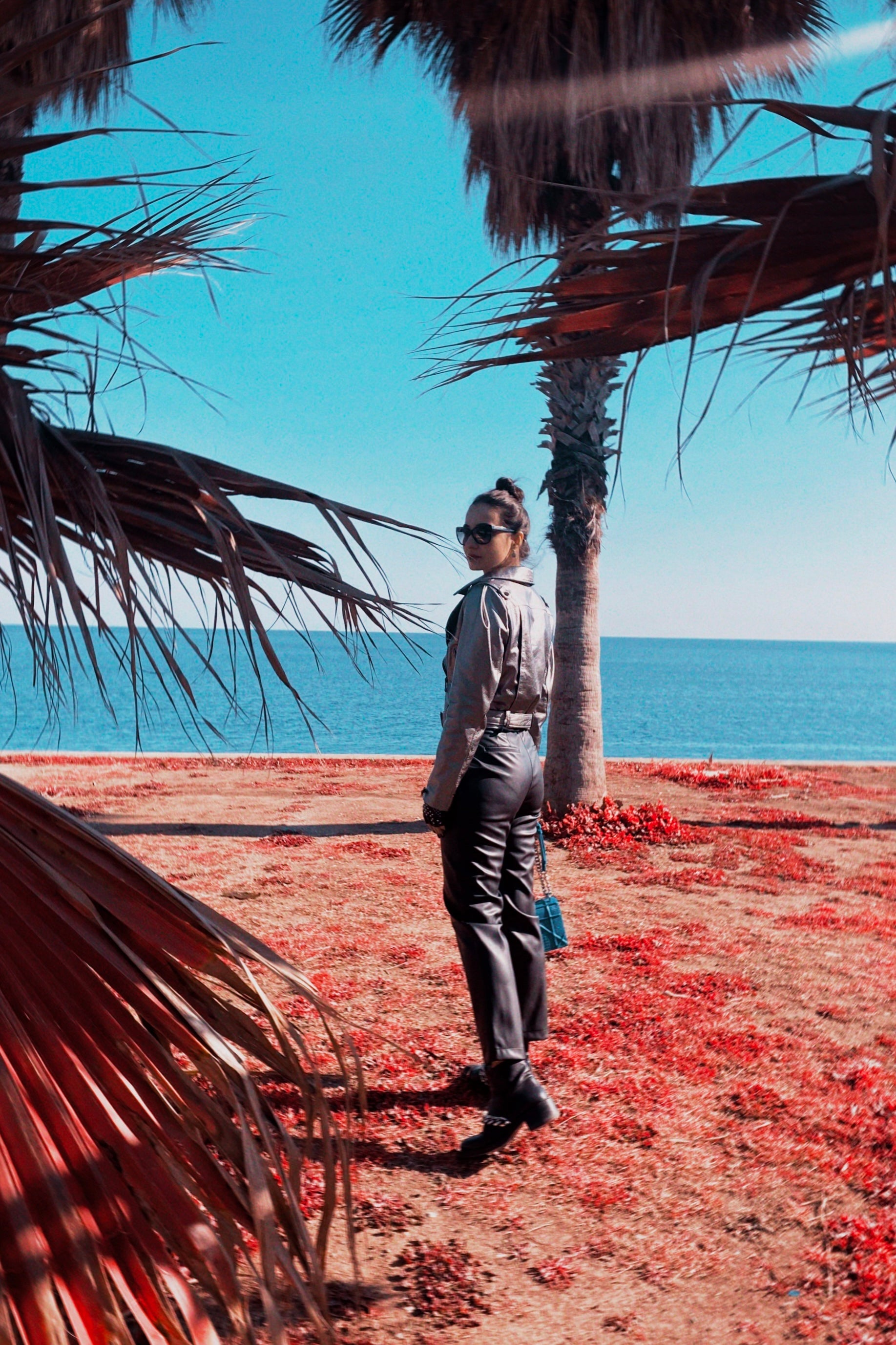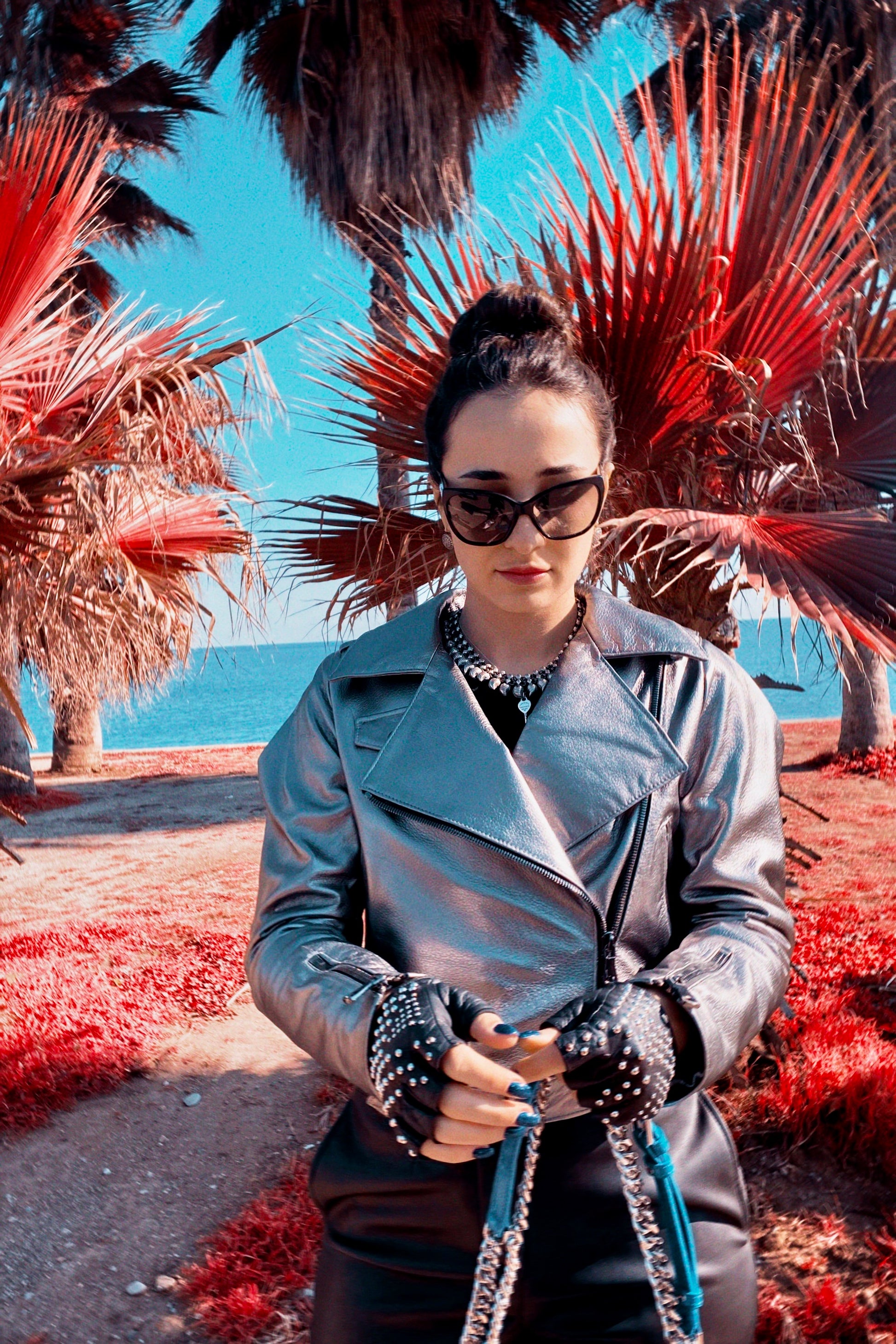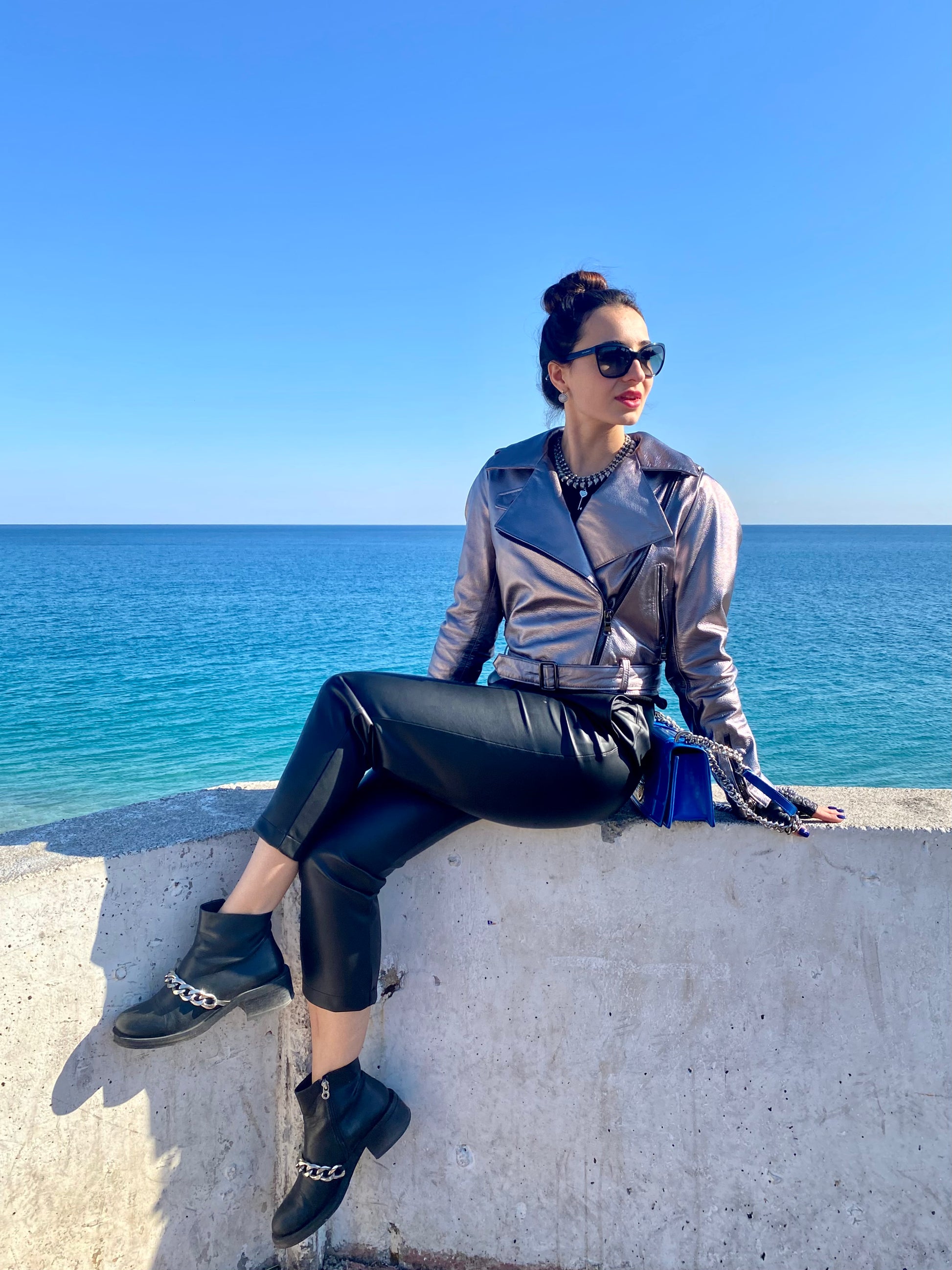 Серебряная кожаная байкерская куртка