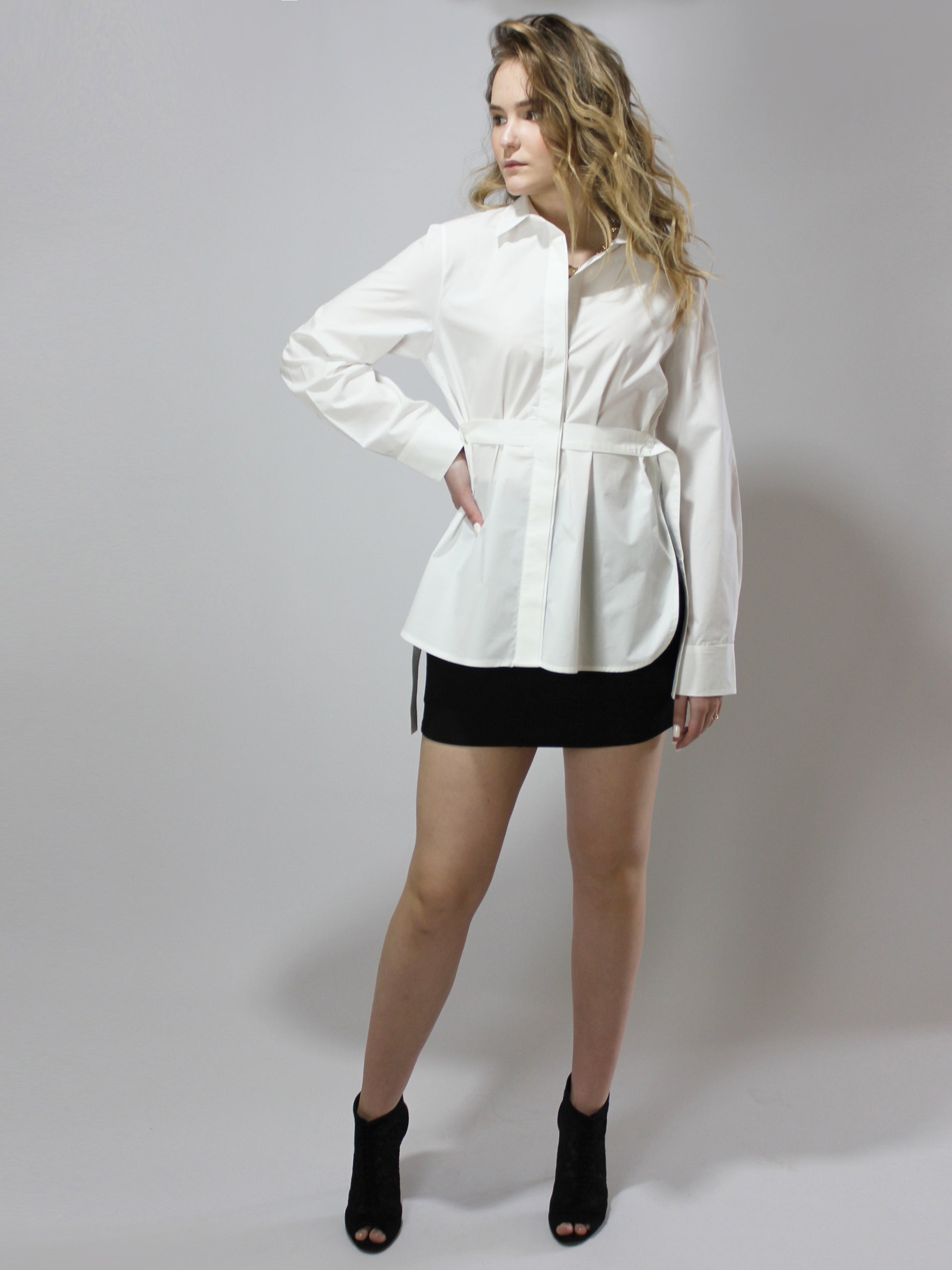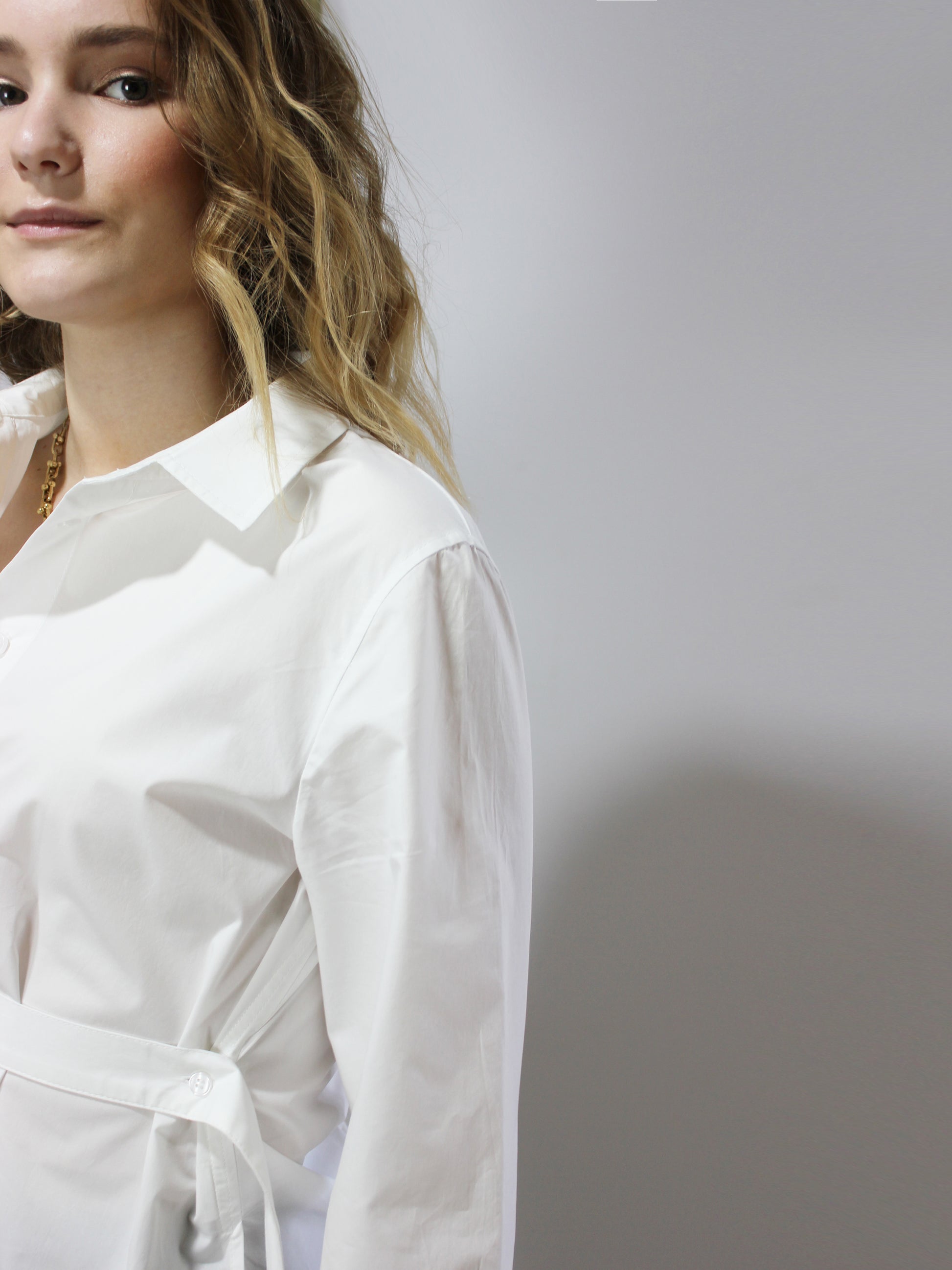 Красивая лимитированная серия дизайнерской белой рубашки. Регулируемый пояс, можно сделать акцент на талии или полностью снять пояс для прямого кроя! Премиальный хлопок высокого качества и тщательное внимание к деталям!
