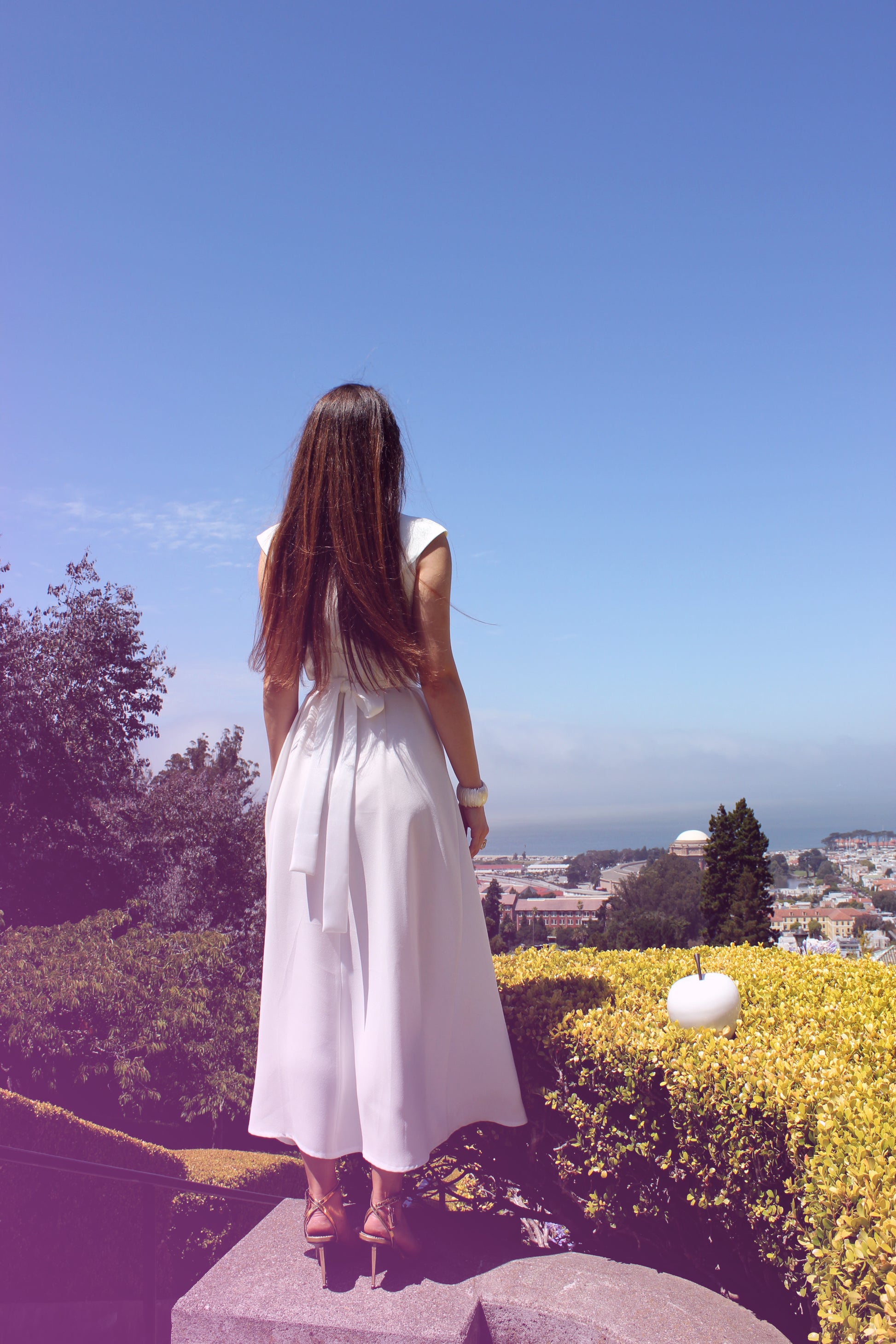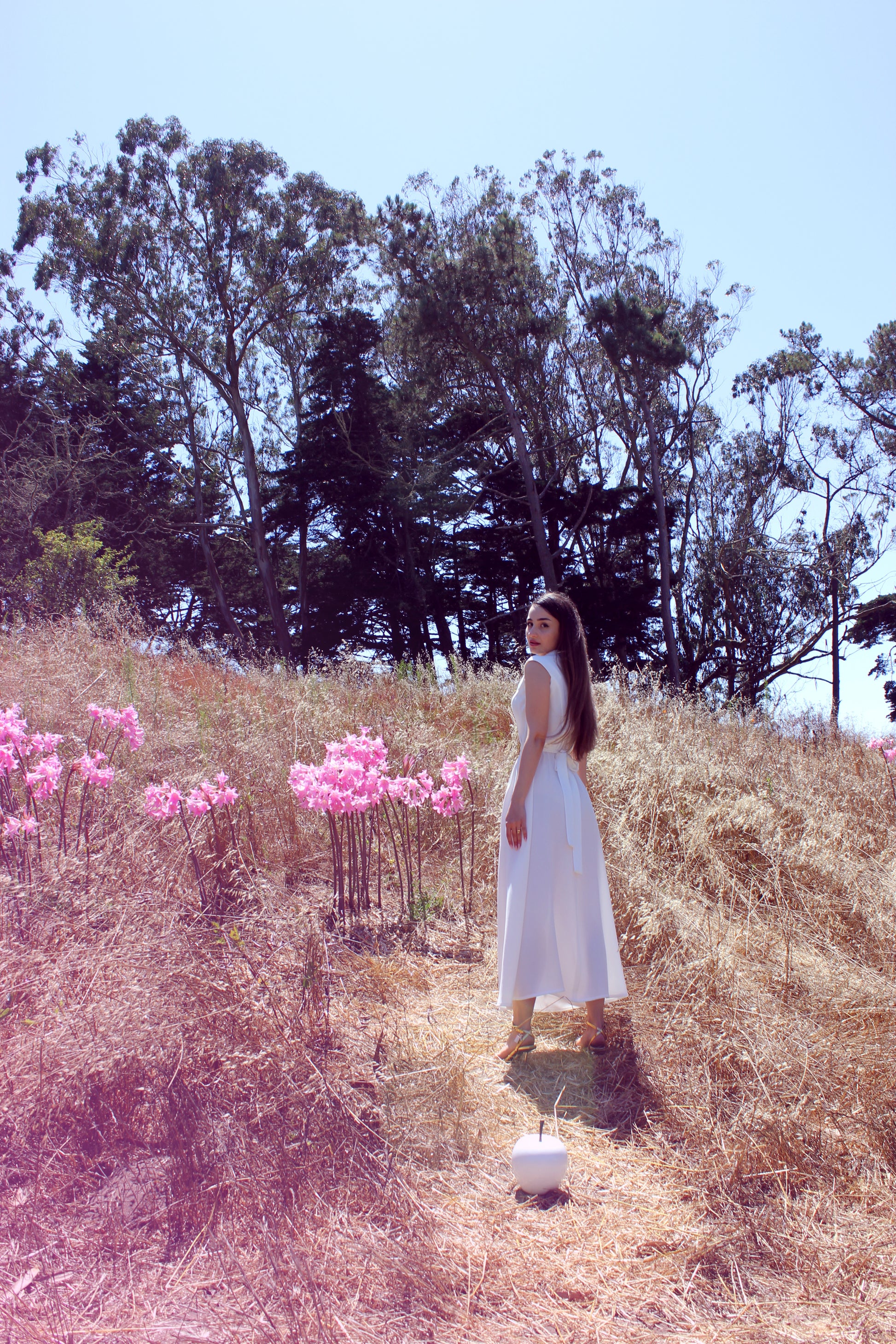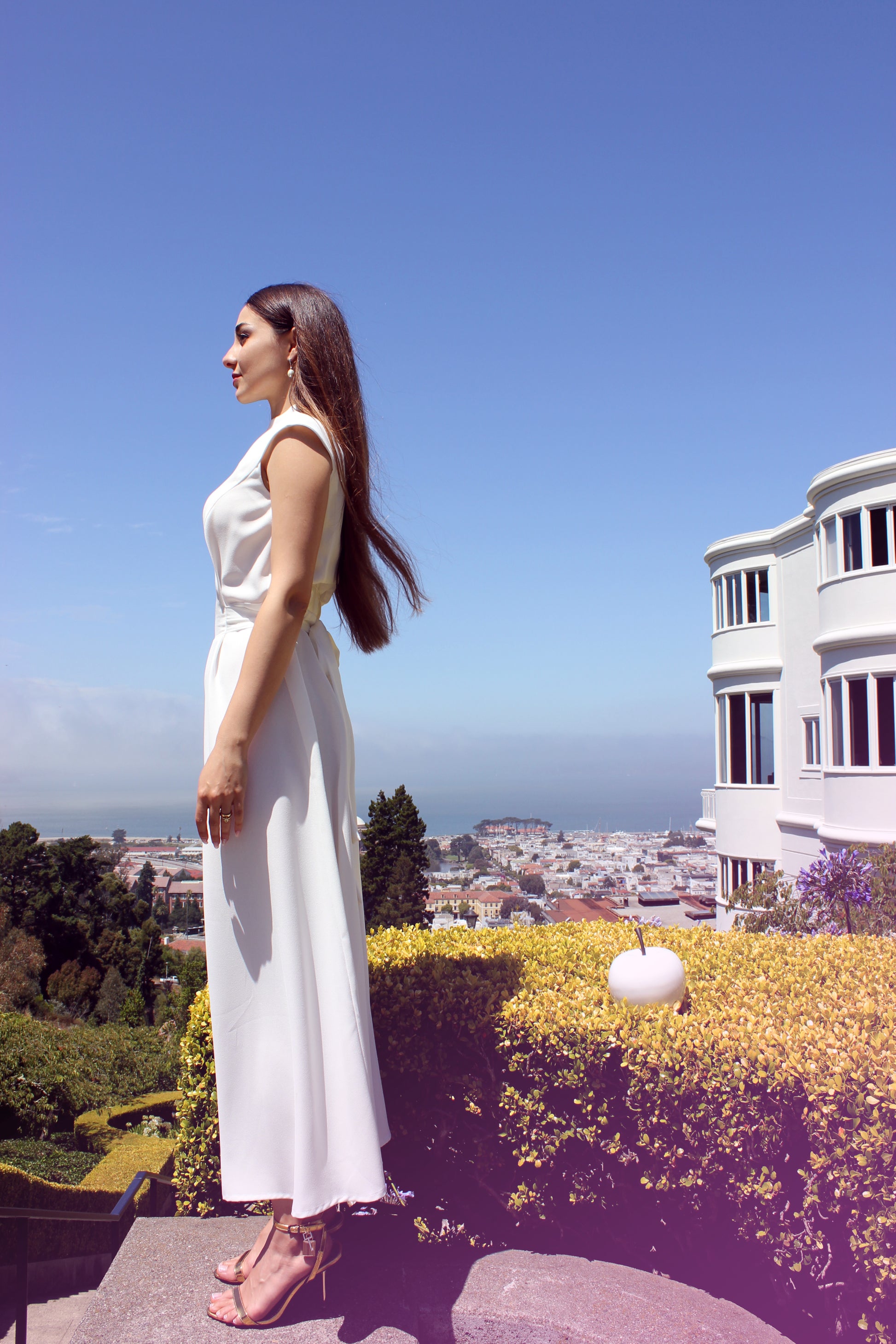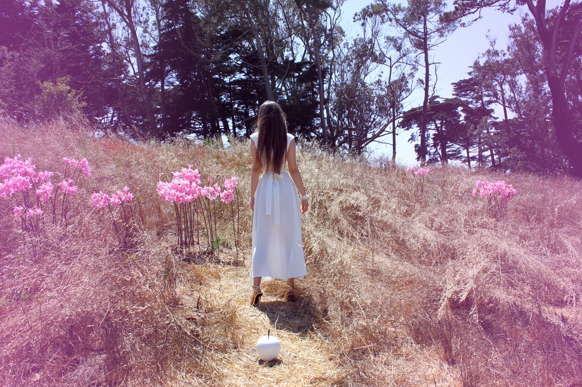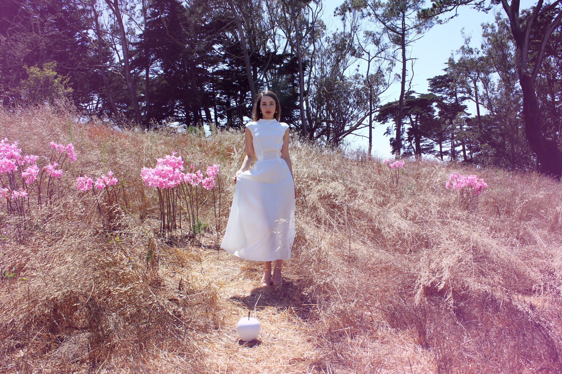 Элегантное платье из чистого белого матового крепа с элегантным длинным втачным поясом, который регулируется по любой талии с помощью удобной резинки, вшитой сзади платья.